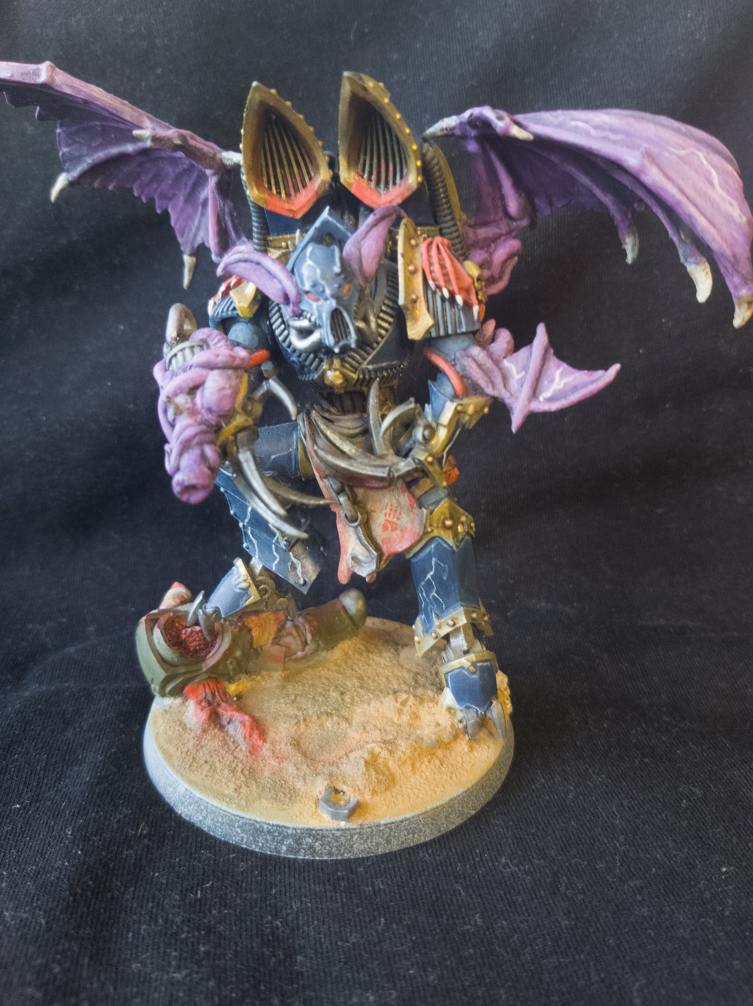 До сих пор не понимаю как фотографировать так чтоб некоторые товарищи говорили что им все видно, но вот. Зацените моего демон принца с крыльями. 3д печать, соединял части лепкой. Непонятная ебулдыга на руке это типа демоническая пушка которую пытался сделать в форме конского фаллоса, все-таки Сланеш. Так вот, скажите чтоль как вам, скажите по цвету, как красить, что можно еще сделать. Базу думаю помазать чем-то, но не знаю чем. По размеру знаю что чутка лоханулся, но в целом под оазмеры дпхи с крыльями подходит из-за его высоты крыльев.