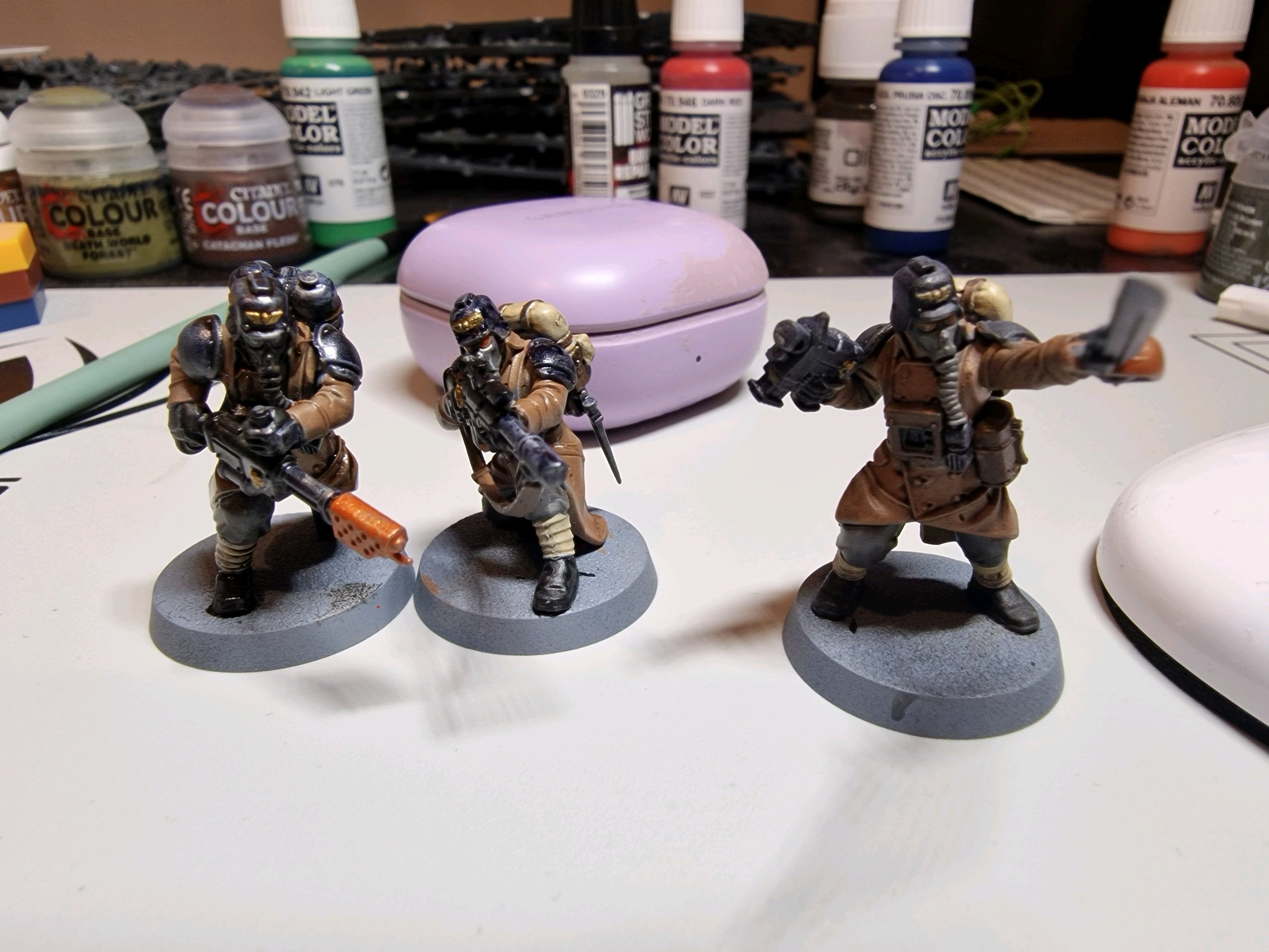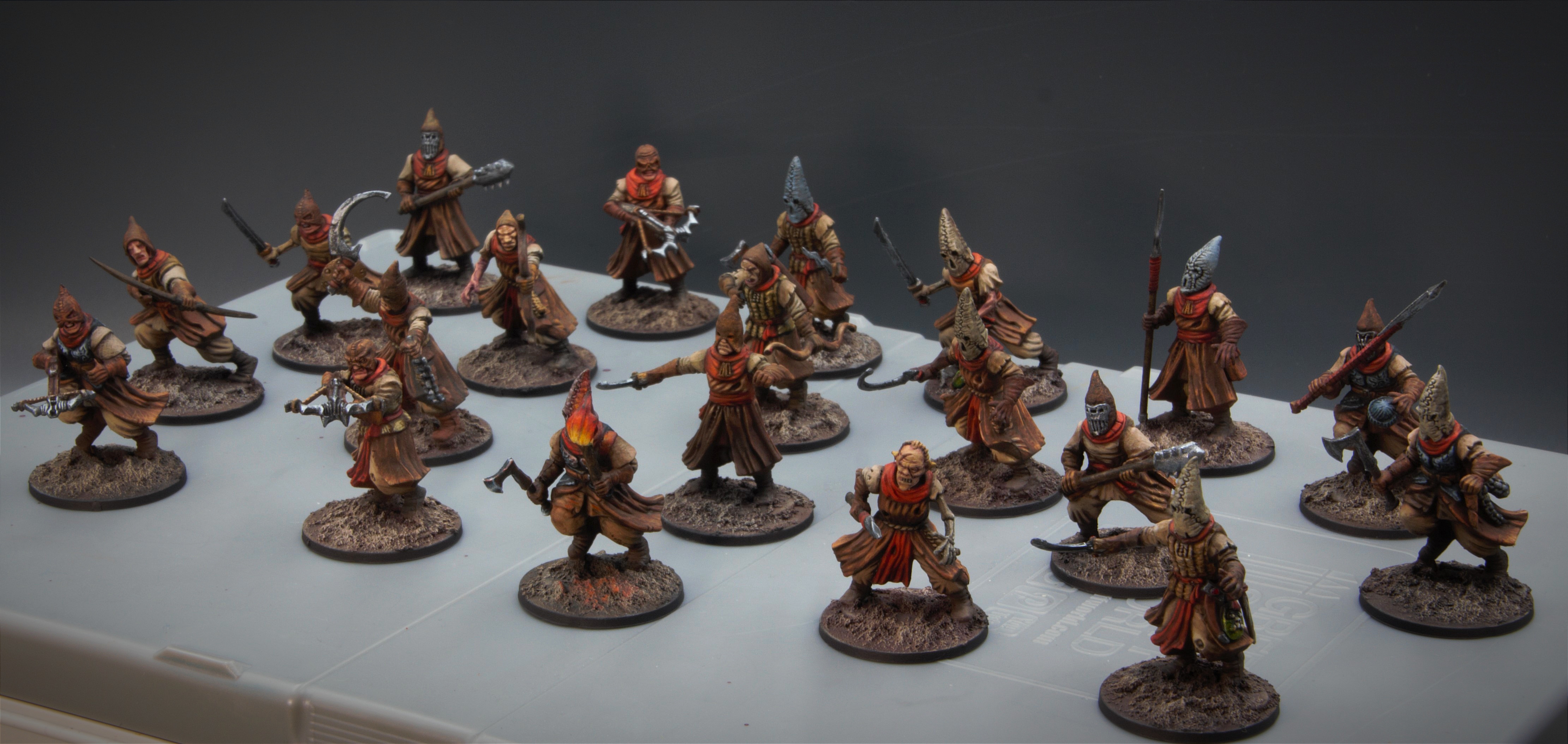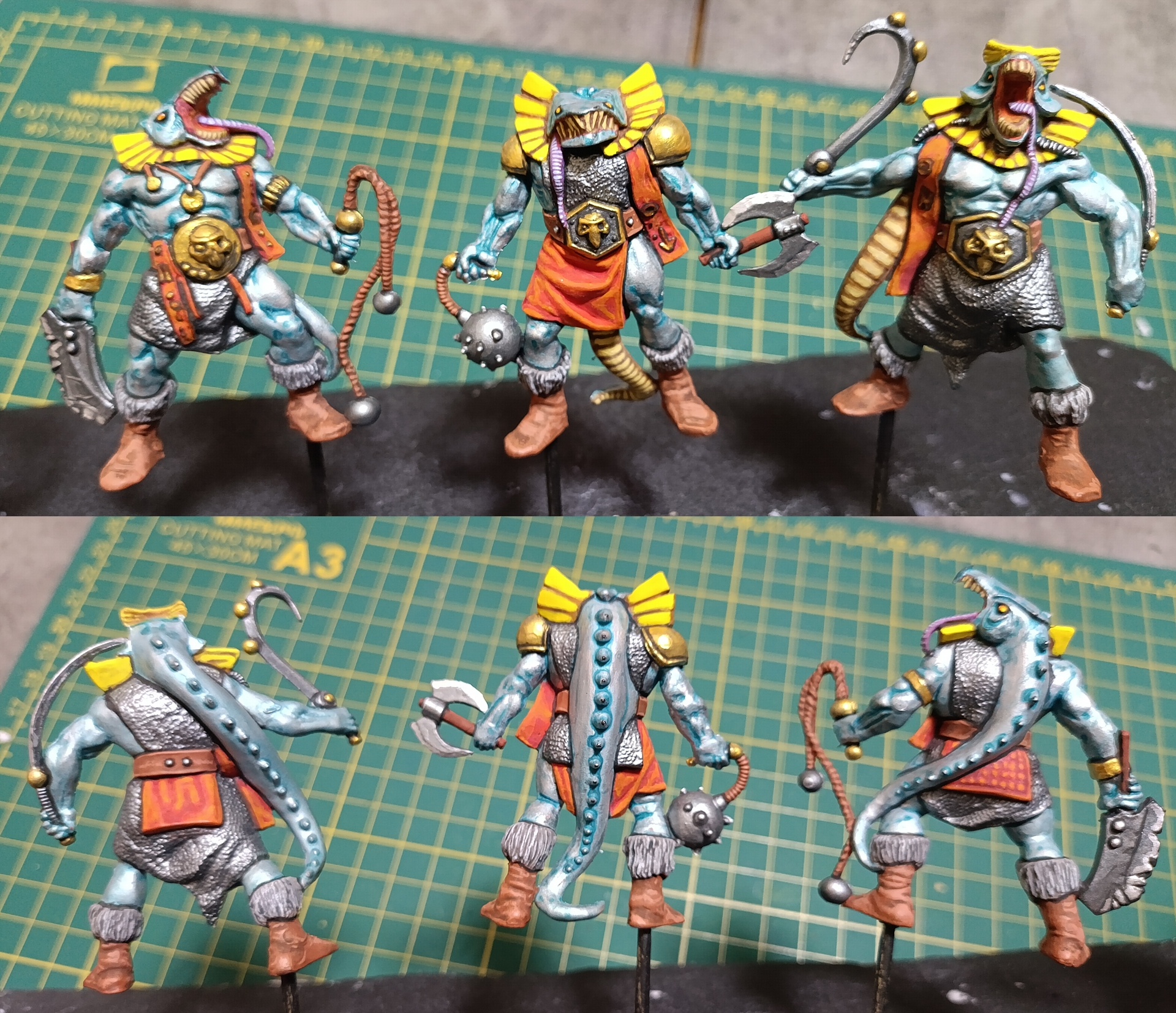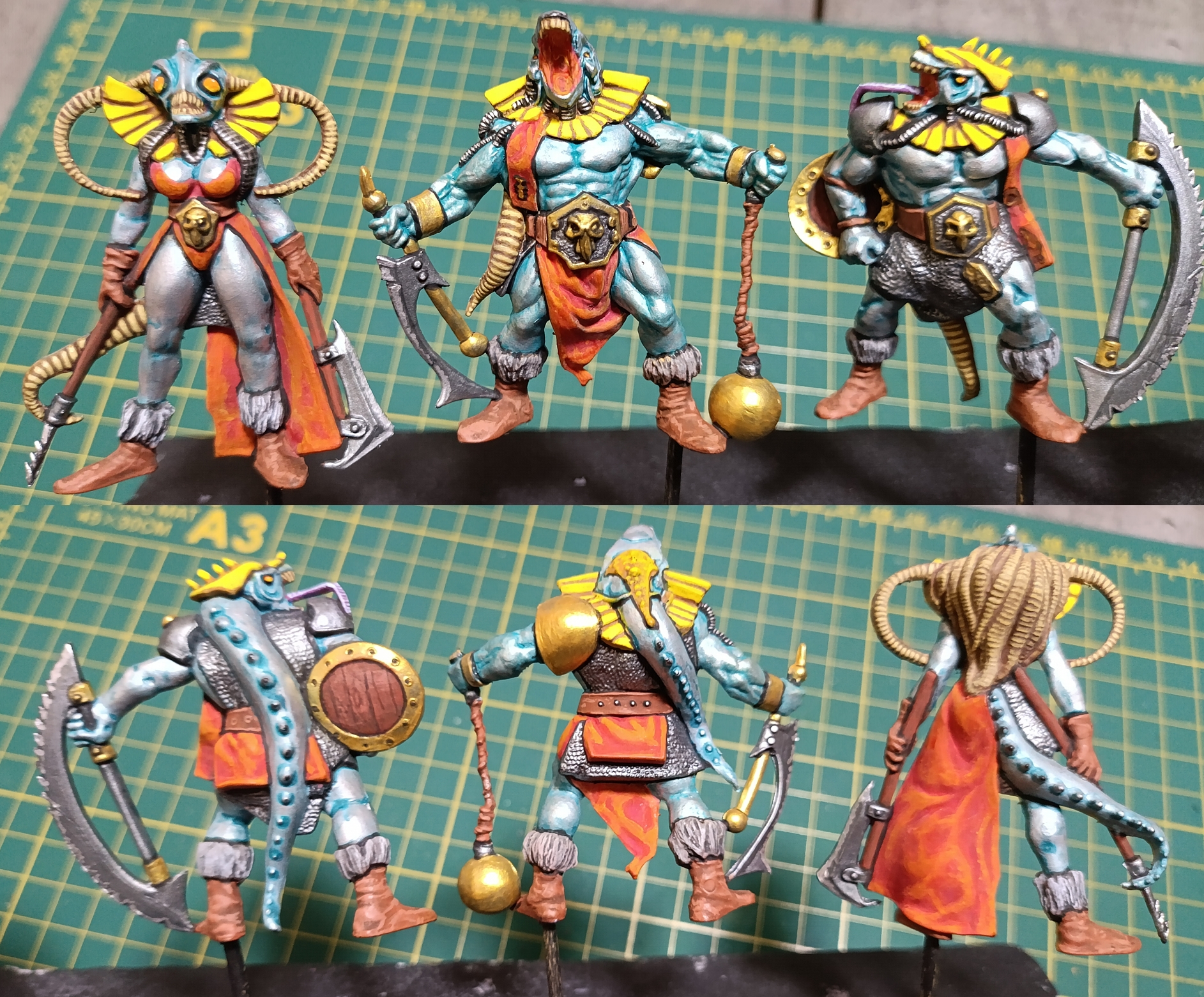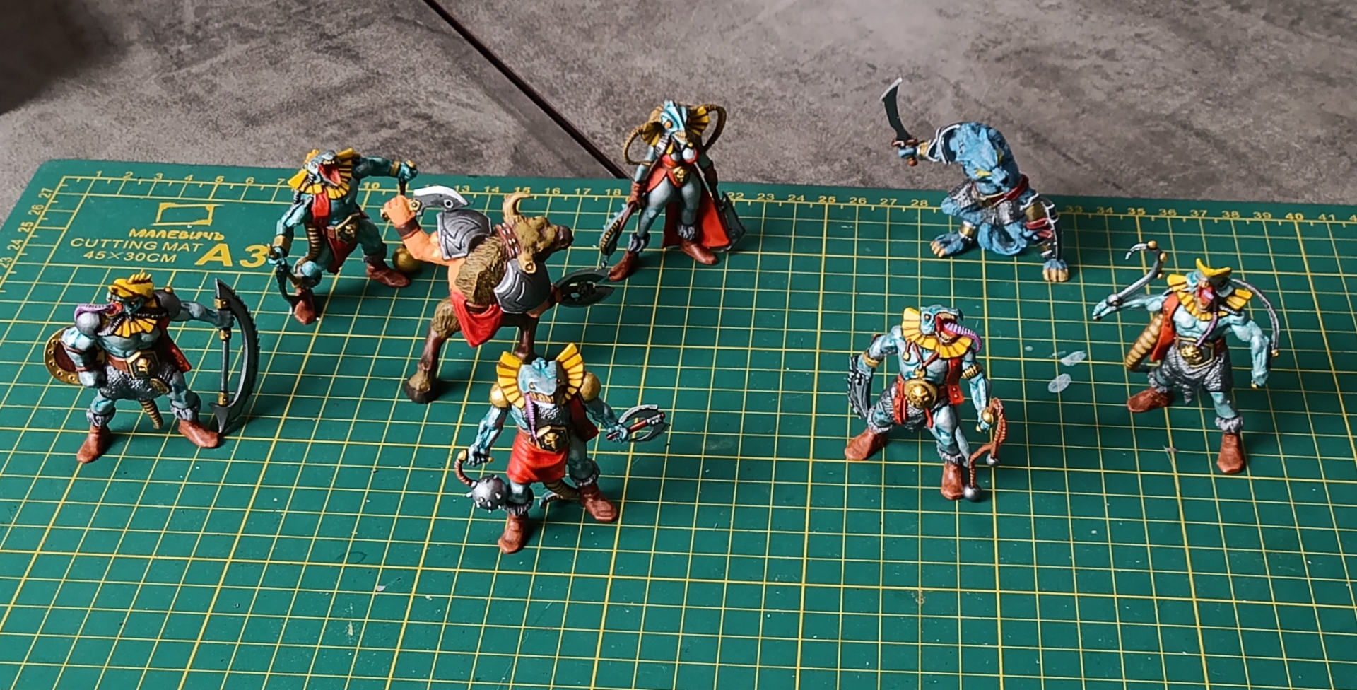 Отряд внешним видом в процессе мне полюбился, но красить его я замучался. Сейчас думаю какие-то последнии штрихи доделать и под лак. Красить одновременно шестерых уродов заметно трудозатратнее, чем предыдущие отряды из четверок.