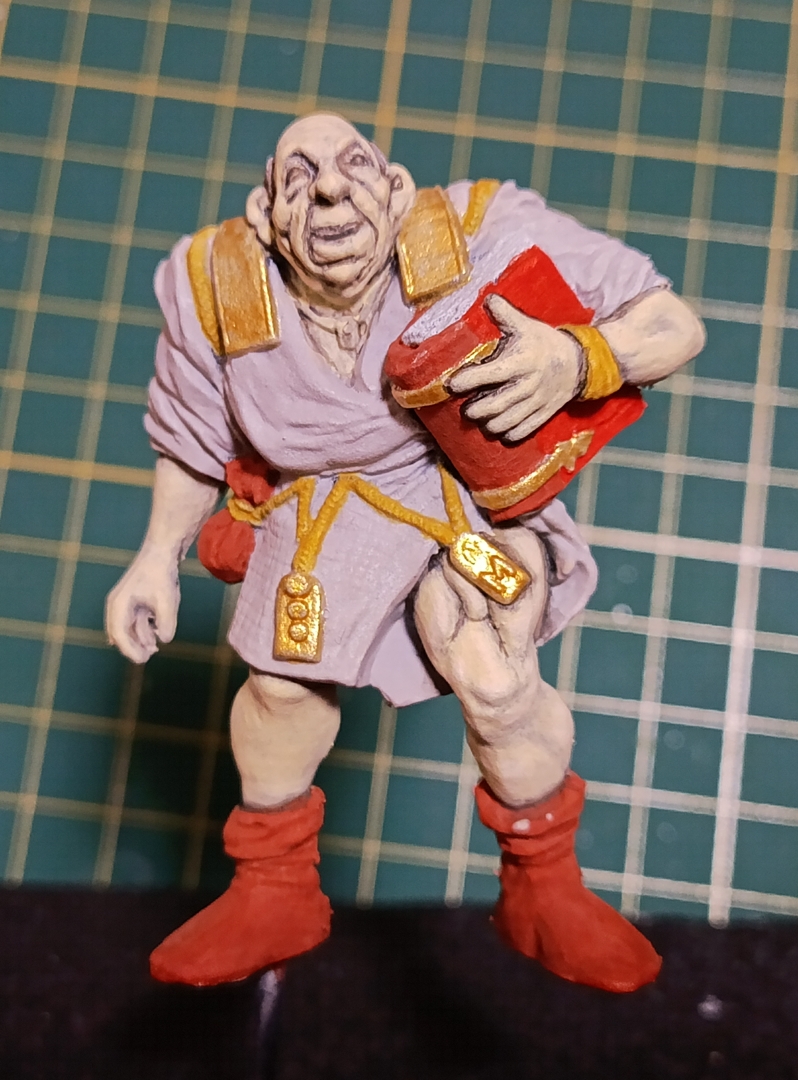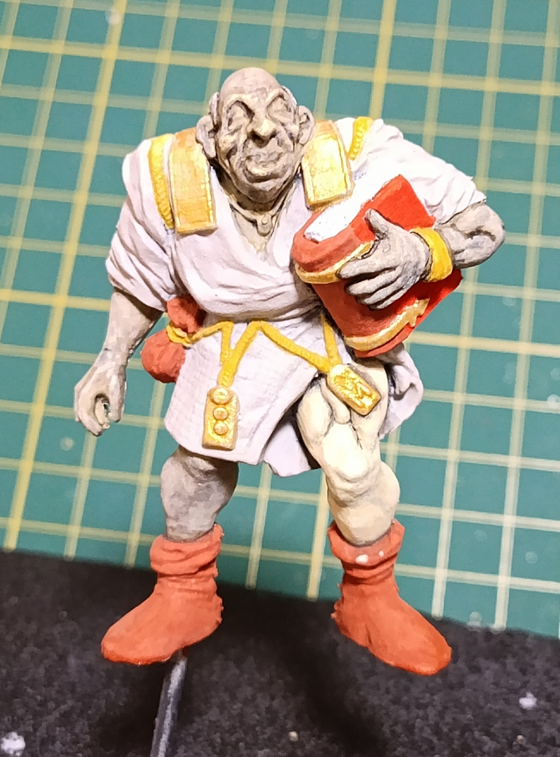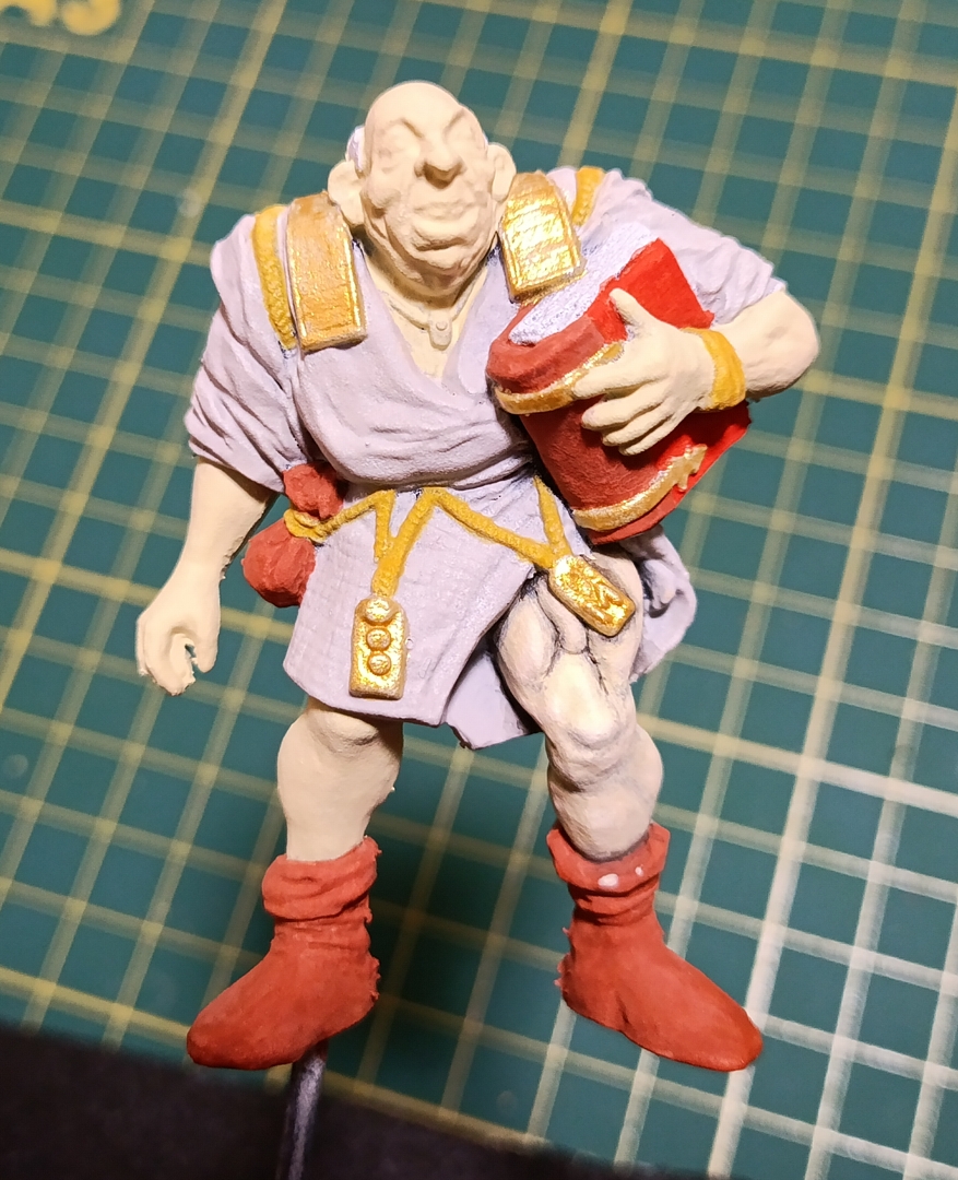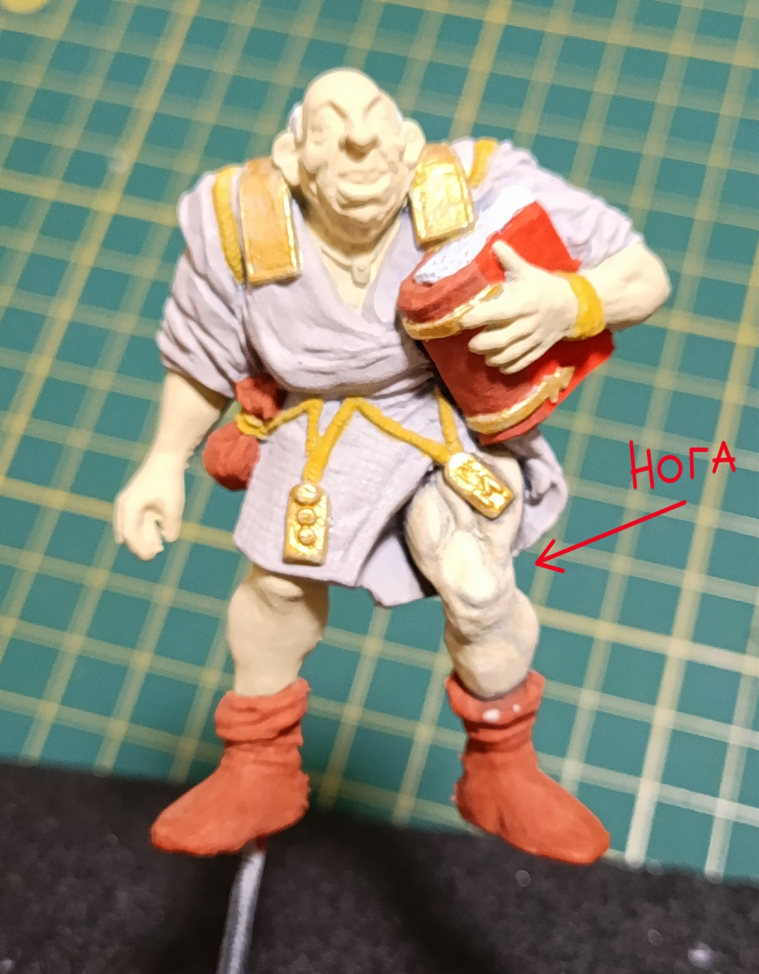До этого прям кожу, которая КОЖА, не красил. Тут попробовал сделать по одному гайду с поправками под себя. Покрасил в телесный светлого оттенка (дед бледный), затем черной краской пролил, после чего тремя оттенками высветлил. Попробовал только на правой ноге. Как выглядит для незамутненного взора? Сейчас вижу косяк, что когда слишком темные углубления тонировал в более светлый тон, на дне углублений краска светлая скопилась. Попробую подправить.