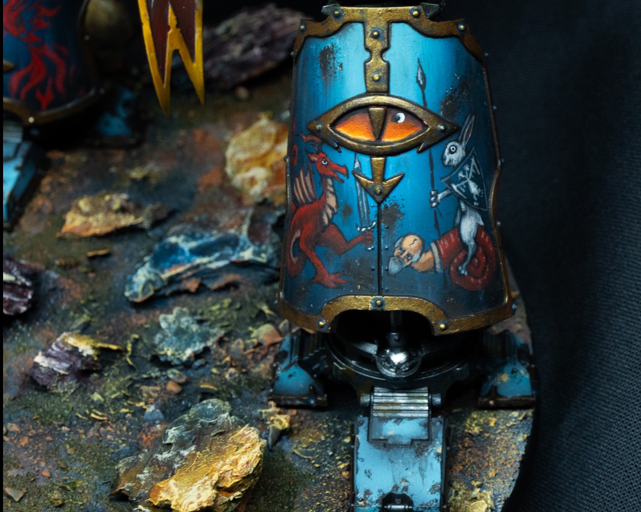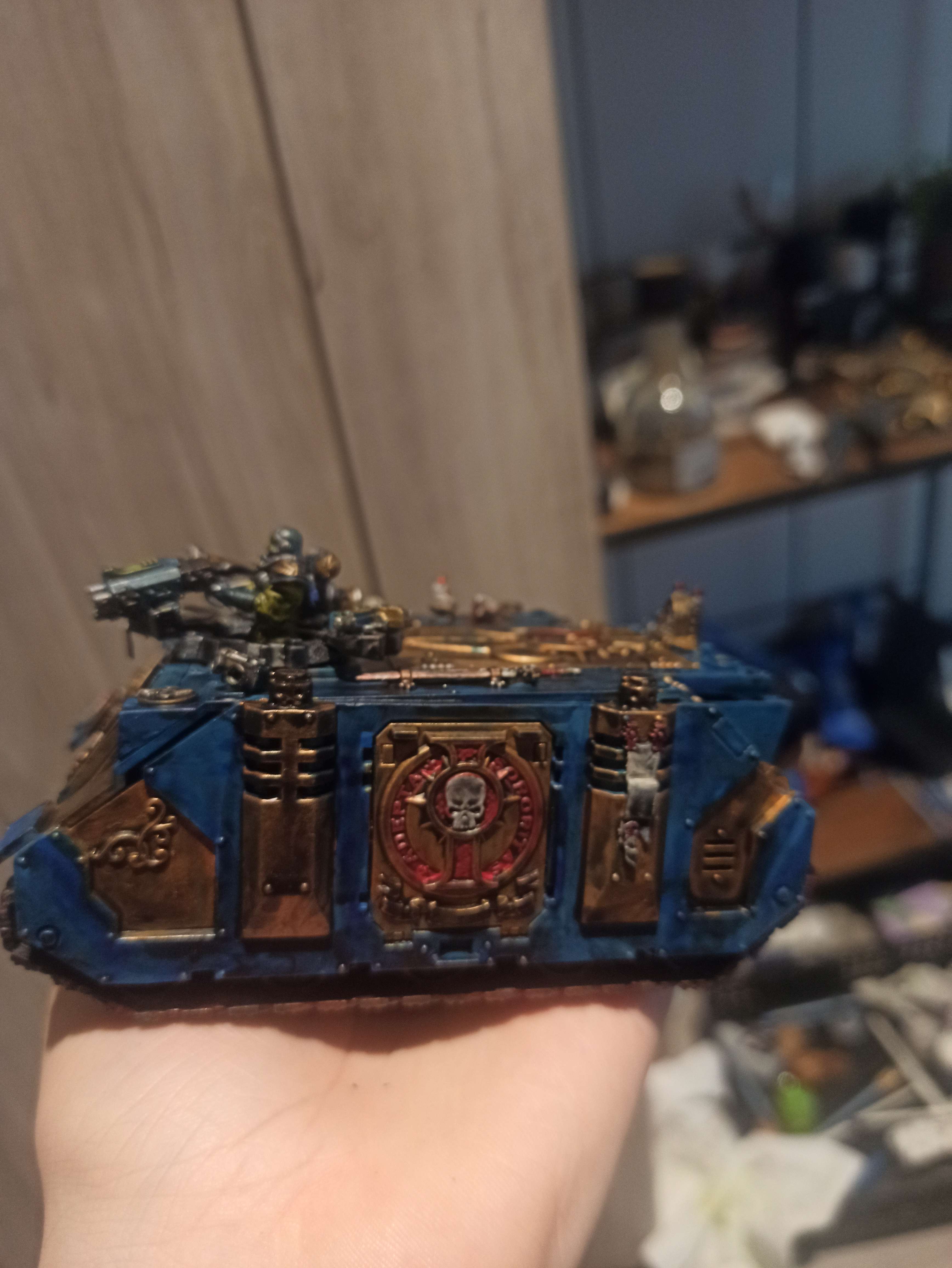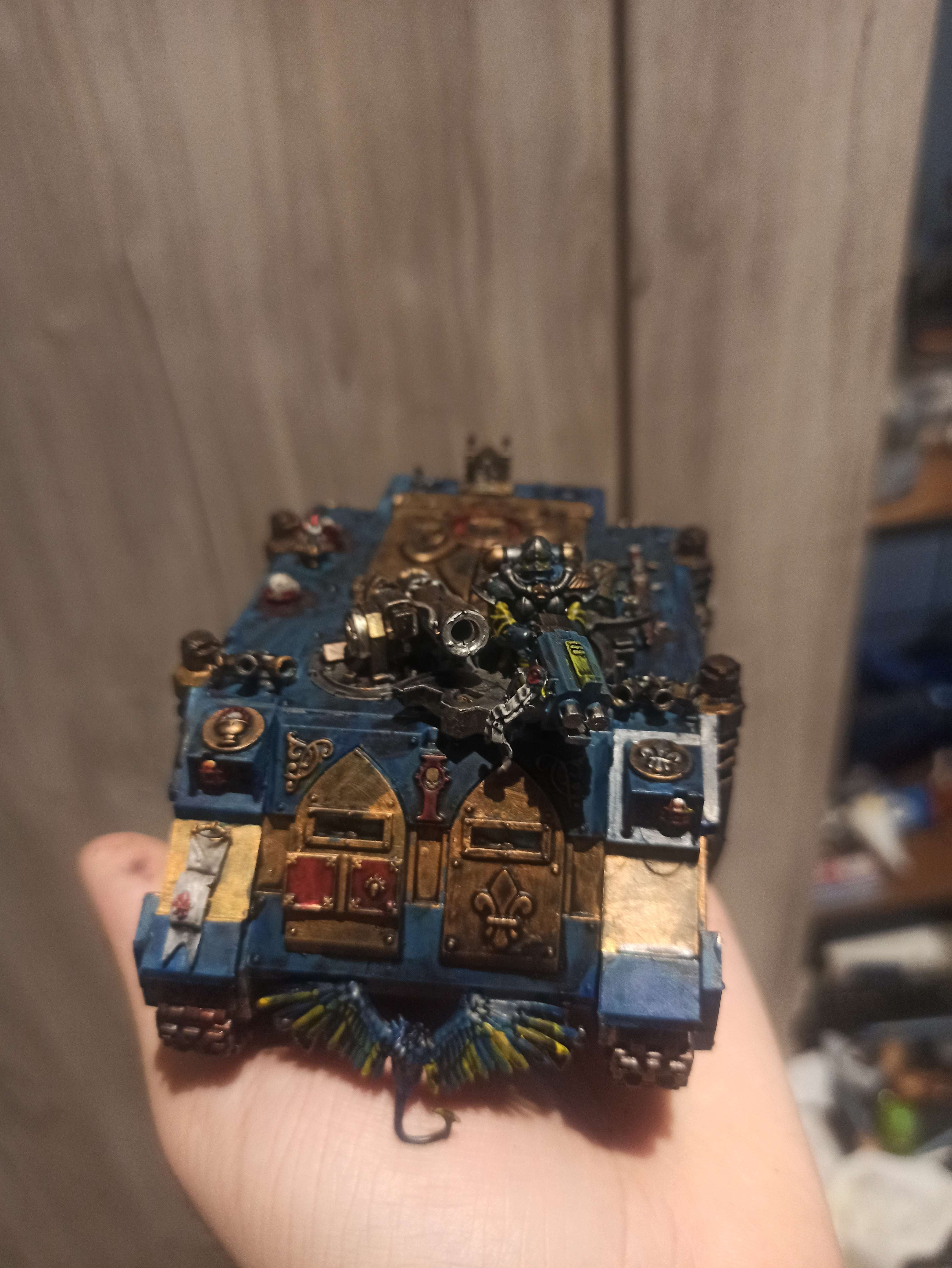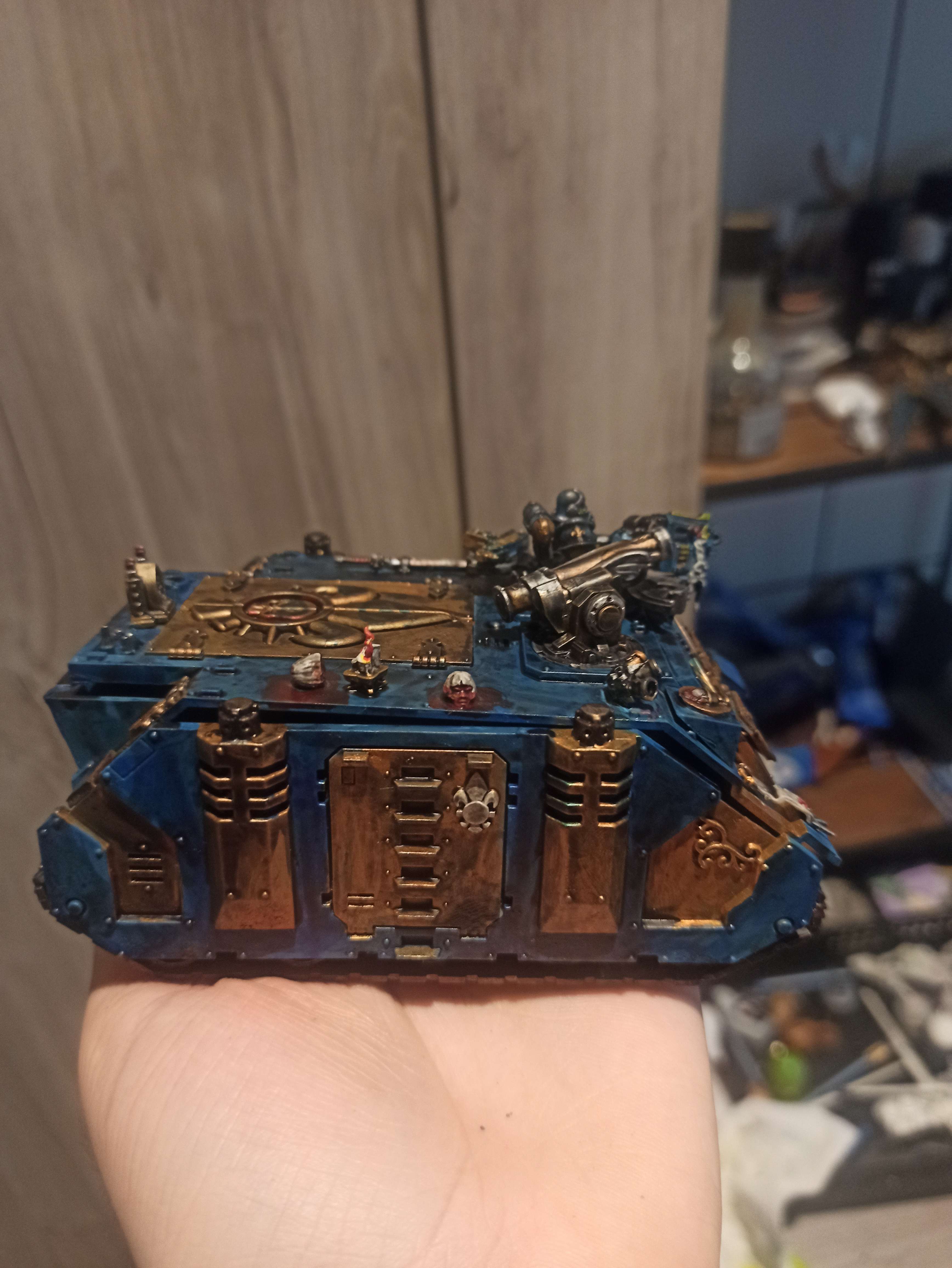 >>1088578 Фикси места где неаккуратно покрашено и залез не на те детали. Вёдра проливки на больших поверхностях это такое себе. Ебейшие щели. Если делаешь хаоситов, то по-хорошему всякие аквилы, чепяти чистоты и символику инквизиции надо бы спилить/исковеркать/измазать говном/заменить на хаостискую символику по типу шипастых звезд, черепов, трупов и т.д. Хотя если у тебя задумка каких-то тзинчитов гидродоминаторов, которые бьют имперахам в псину, то можешь оставить.