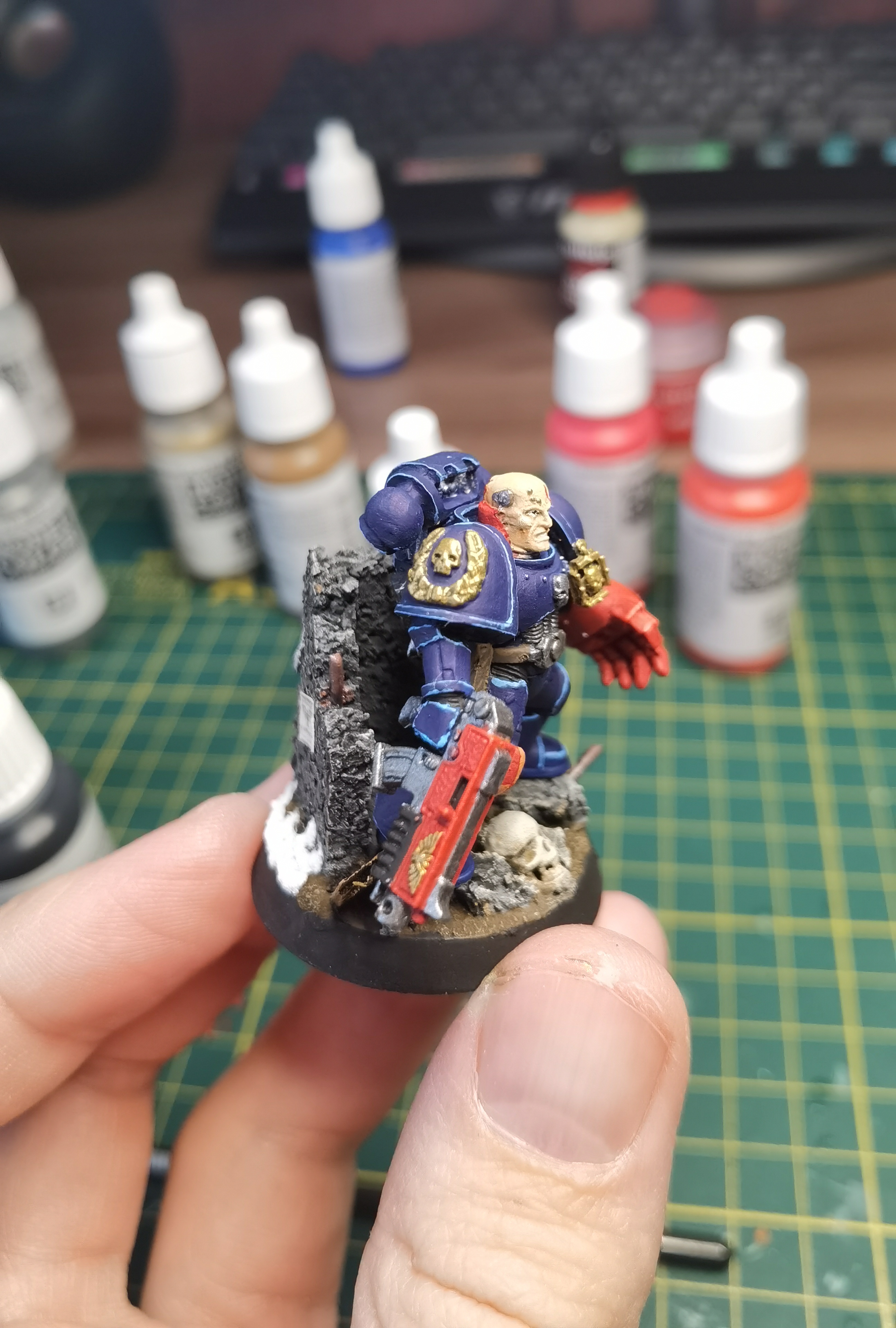 Всем привет, с вами собиратель ночников, и я кажется осознал еще один этап покраса человечков. На самом деле понял давно, но вот щя покрасил легионера с риперкой так, что мне понравилось. На наплечники не смотрите, я еще думаю как их исправить. Хотя, если будут советы как им придать вид таких перепончатых крыльев, говорите. Че скажите?
