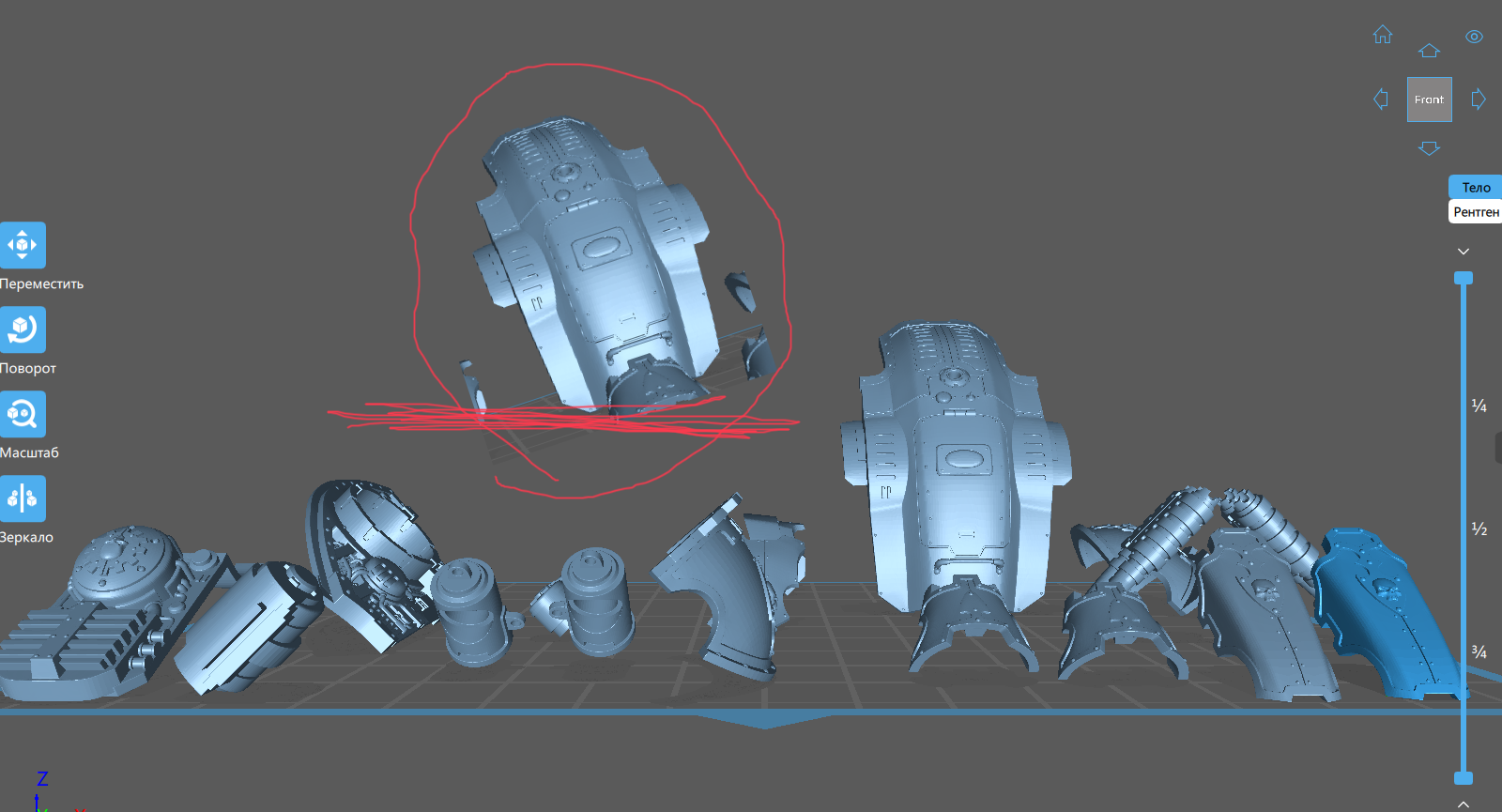 >>1089670 Если вертикально их поставить то больше залуп от суппортов по периметру чистить и выше шансы что рябь печатная пойдёт. Как сейчас только точки будут откуда "расти" печать начнёт, и всё. Я бы так же плюс-минус всё и раскидал сам на самом деле. Мб только не параллельно столу все щитки и карапас, а немного наклонив. У меня ничем не подтверждённая маняшизотеория что так лучше печатается.