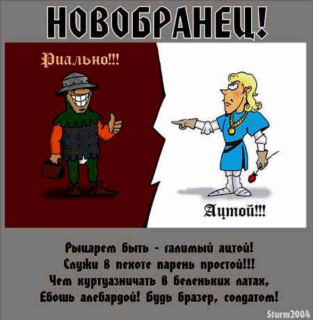 >сука выйди против меня с копьем, я дождусь твоего конченого выпада, отведу копье, пну тебя в коленку, и ты пукнув словишь меч в бочину При попытке отвести копьё назад копейщик тупо сделает шаг назад и проделает в тебе лишнюю дырку. Про "пнуть в колонку" я вообще молчу, чтобы подобраться к копейщику на расстояние пинка тебе нужно как минимум уметь телепортироваться.