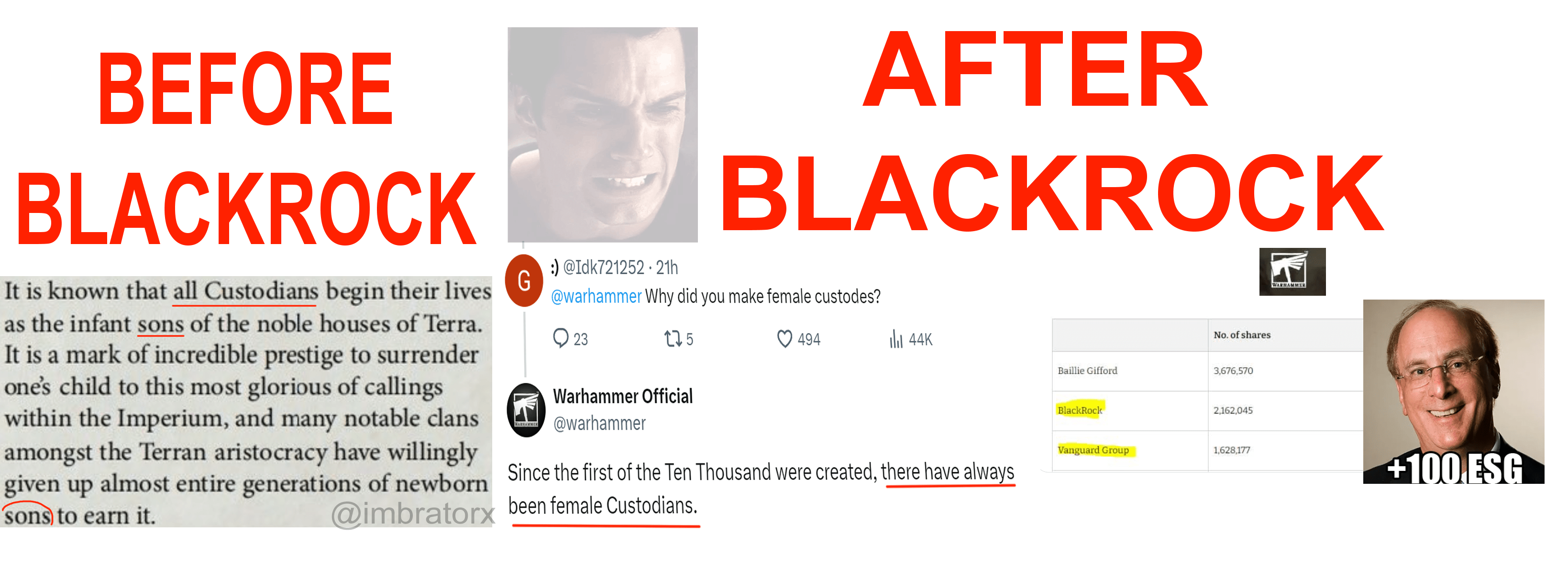 >>1106960 Когда Император только появился на Терре, все строилось из глины (опционально - из говна с соломой). Глиномес, говномес и их командир были самыми созидательными профессиями. Десятки тысячелетий спустя, Император построил Терру своей мечты и детских восторгов - полную орлов, золота, с планами к которым Он прикладывал свою руку - и ордами специально выведенных Боссов Качалки.