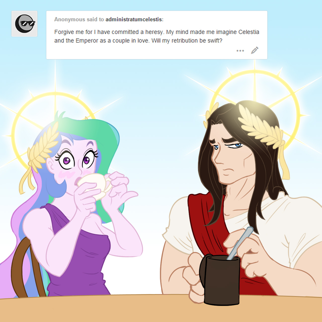 >Не косвенно - в Великом труде он прям зелёным светился от некронотеха Да косвенно, косвенно, обмазался ради дела, ради блага империума. Эмпора тоже эльдартехом обмазывался. Для блага Человечества.