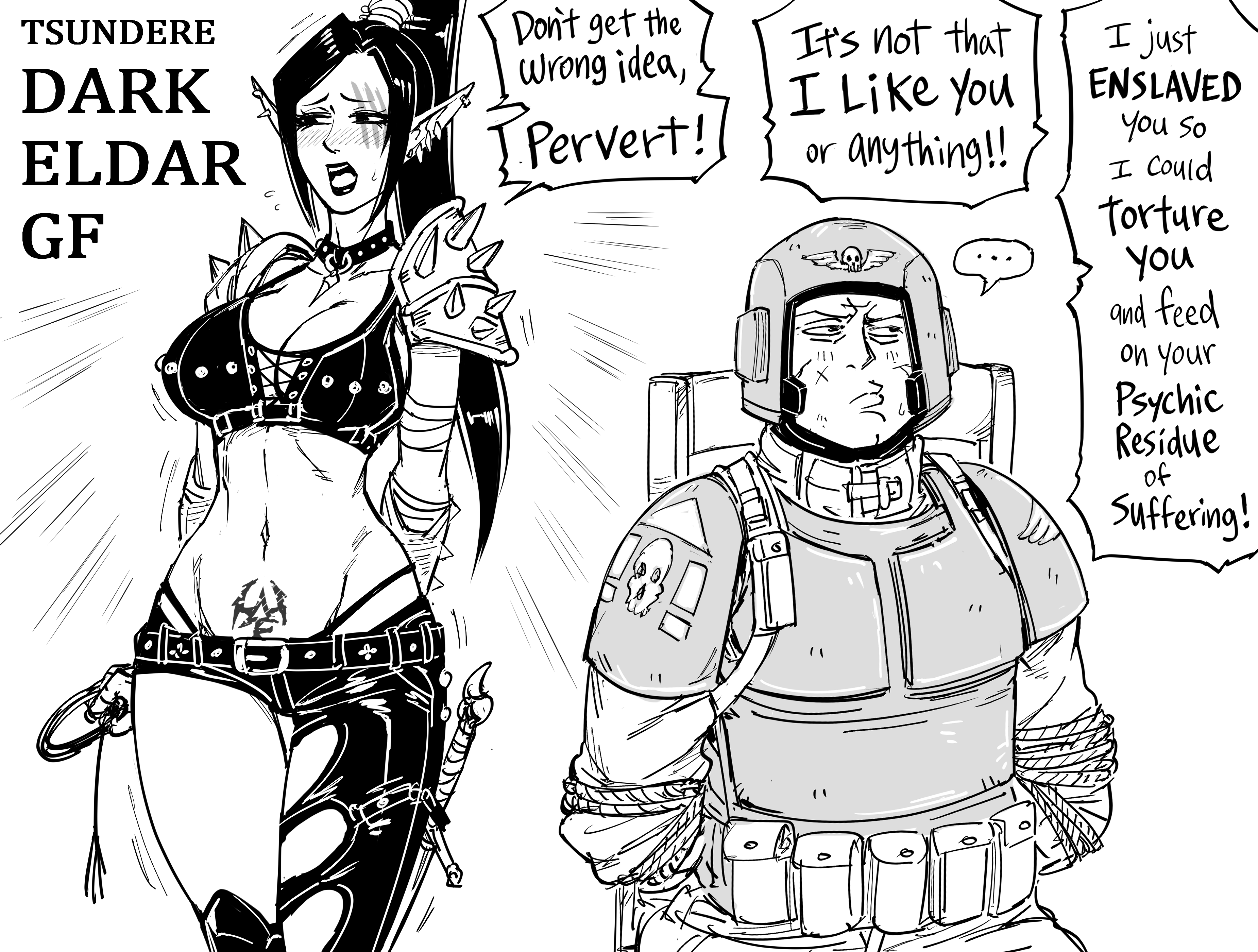 Вопрос про друкхари. Как голые бабы и мужики в одних труханах и с ножиками умудряются побеждать космодесов, которые мало того что на голову выше, так еще и в броне?