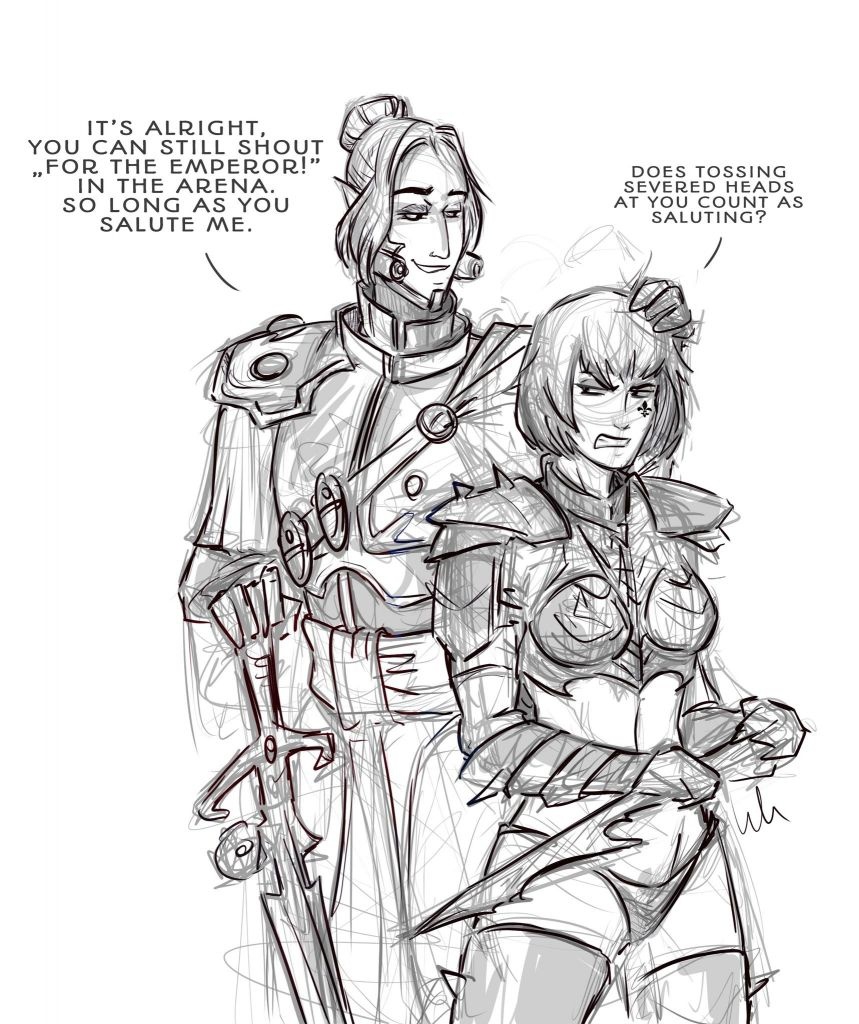 Есть кто нибудь, тупее чем этот Петрович? Это же литералли физрук алкаш, которому дали командовать легионом. И зачем его Имперян создал? Для любителей мужиков из народа? Еще и дизайн брони спиздил у Имперяна и оцыганил его... Просто эталонный заводчанин с ебанутыми установками в голове.