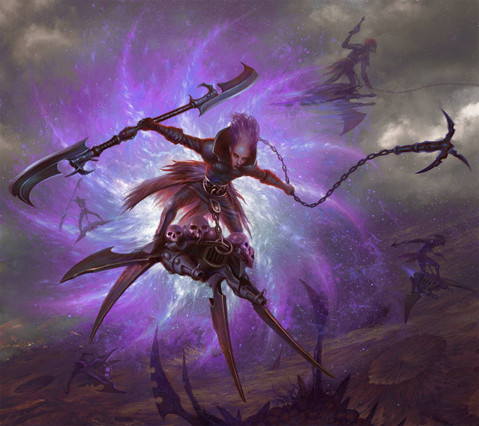 Что мешает друкхари прилететь на какой-нибудь забытый Императором мир, где люди или ксеносы живут на уровне средневековья или ещё более раннего периода и заявить что они боги, что солнце скоро потухнет, но если им предоставлять жертв, которых они будут ритуализированно убивать, то типа мир сохранится. Чтобы доказать свою божественность можно выстрелить по какому-нибудь селу из орбиты и сказать что наказали их за грехи. Короче стать буквально ацтекскими богами. Разве это не интереснее чем просто набегать на очередной агромир и также как тысячи лет до этого арканить какого-нибудь Сычева?