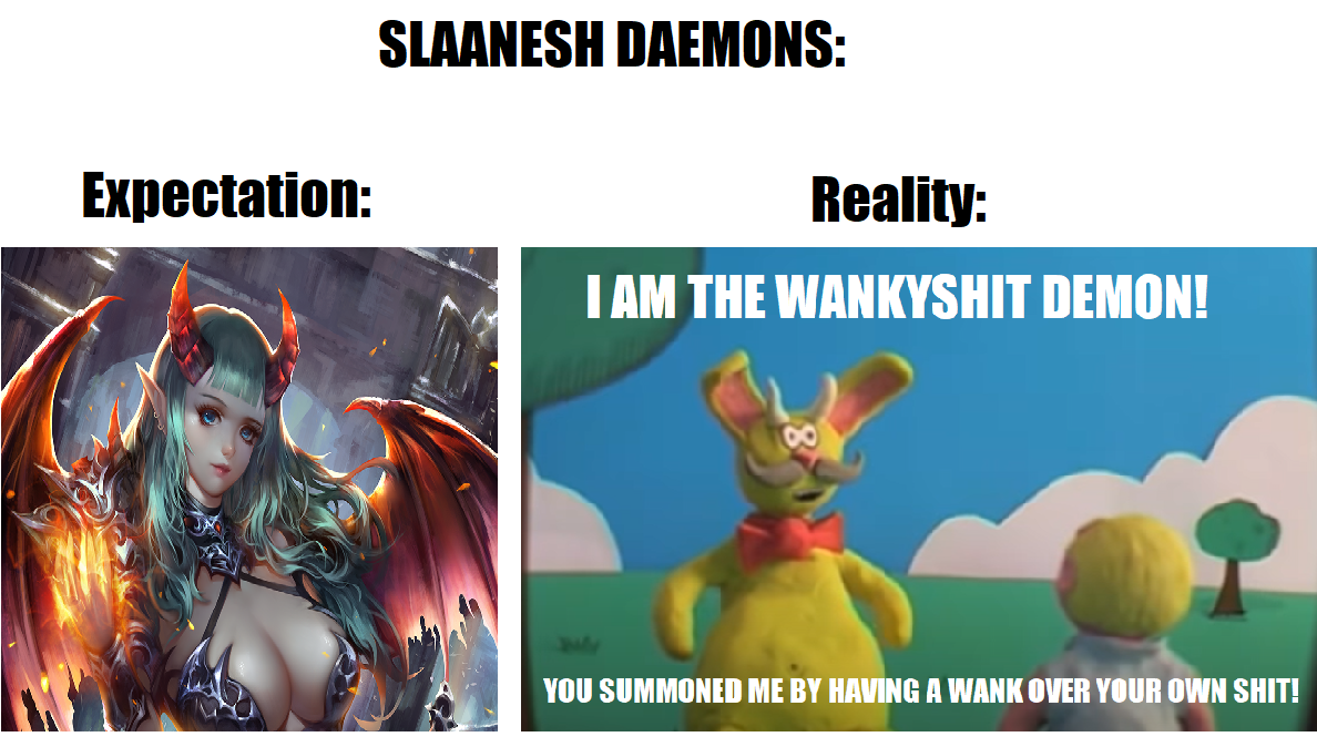 >>1105322 К латентным слаанешитам, как ни странно, относятся ЖР - неспроста их смог осквернить сапфировый король. ИК - как раз таки скорее Нургл. Стойкость и "очищение" через боль. Удовольствие тут ни при чём. Уды и верзохи - это фетиши местных анонов. Тзинчитов не вижу - все, кто перебарщивал с магией и хитрыми планами уже предали.