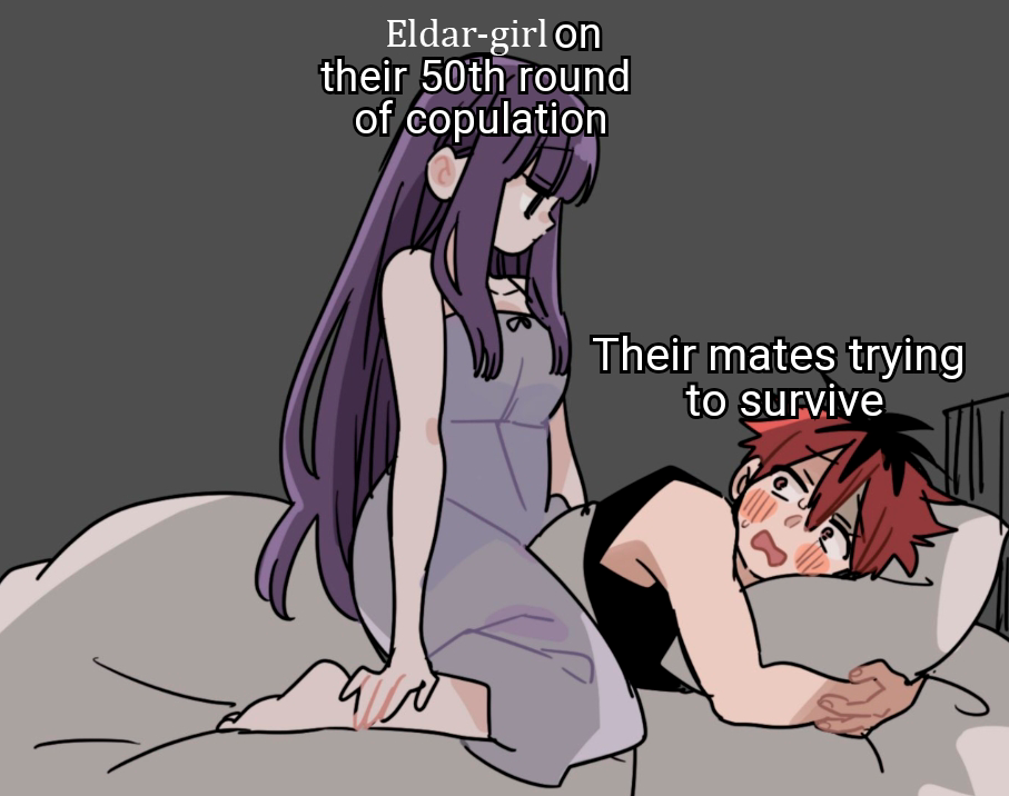 >>1107022 По умолчанию все эльдары псайкеры средне-низкого человеческого уровня. За это у них отвечает специальный кортекс в мозгу и напитка от бесконечного цикла, ещё пяточки могут друг-дружке говорить в голову с рождения. Из-за усреднённого псайкерского потенциала, действительно сильных псайкеров у эльдар в процентном отношении ещё меньше чем у людей. Без активного использования и тренировок псайкерский дар довольно быстро деградирует в зачаточное состояние. Проще говоря эльдары повышают свой уровень ведания путём тренировок и зазахаривания в Фарсира.