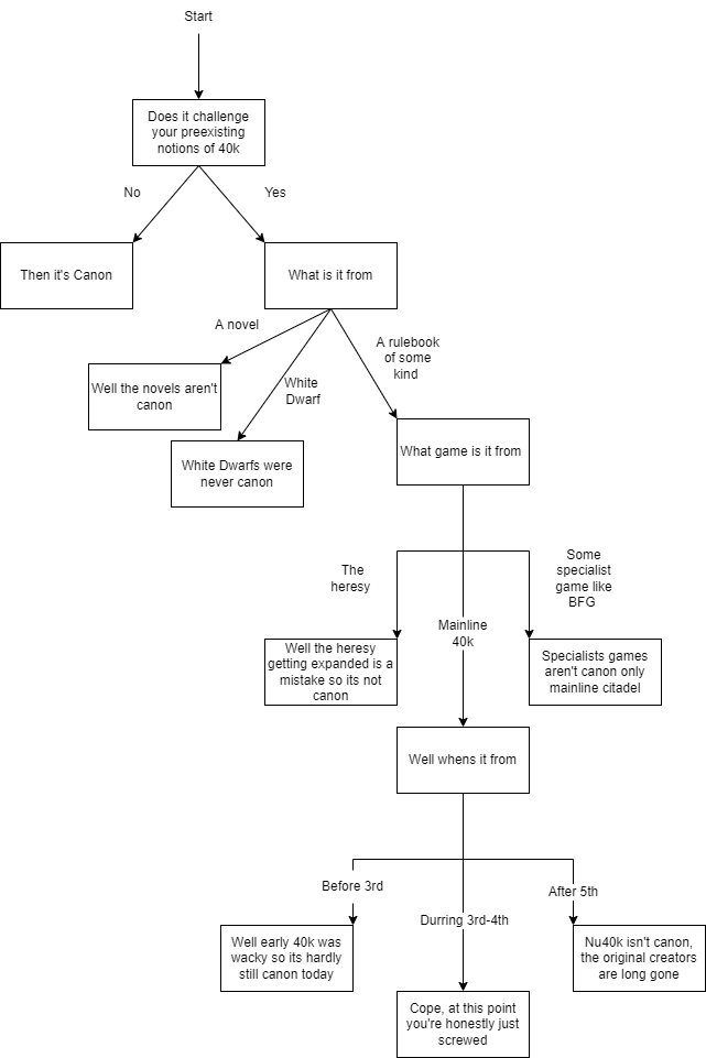 Дорогой неофит, если ты зашёл на эту доску и ищешь картинки в хайрезе или пдфки кодексов, то погоди создавать тред с реквестом, написанным КАПСБОЛДОМ, лучше спроси в треде картинок/литературы. Актуальные ссылки всегда висят в шапке раздела. Если ты не понимаешь каких-то вещей, у тебя есть вопросы, ты жаждешь знаний по бэку/настолке, то смело спрашивай тут, и мимопроходящие вахаёбы постараются ответить на него в меру своей упоротости/дивности. И не забывай о Лексикануме, он зачастую знает больше анона: http://www.lexicanum.com/ Для настольщиков: https://wahapedia.ru/