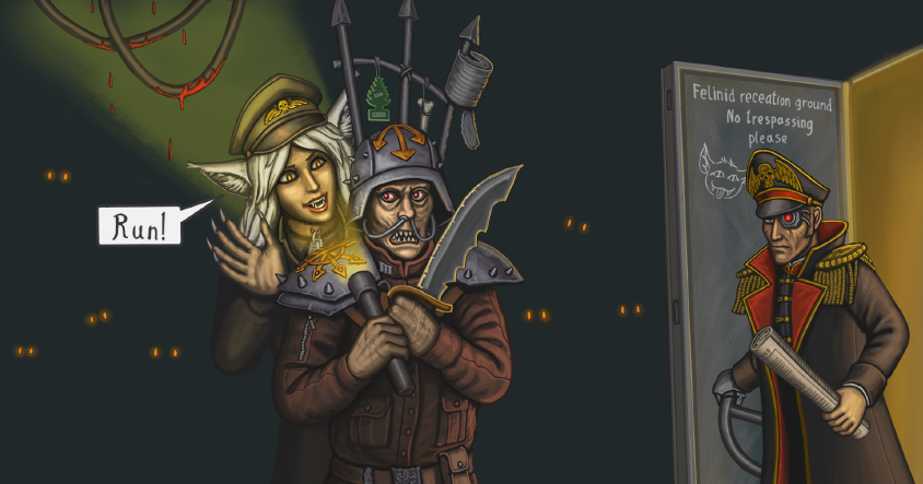 >>1106899 Ты Сычиус, серв славного ордена кулАков @ Подрываешься по тревоге и со своим отделением бежишь 200-келометровочку от казармы к месту вторжения @ Несколько дней бежишь, лавируя между огромных бУтлей искусной работы @ Когда добежал видишь, что отсека в который вы направлялись не существует @ Бежишь 200-келометровочку обратно, чтобы уточнить а что случилось