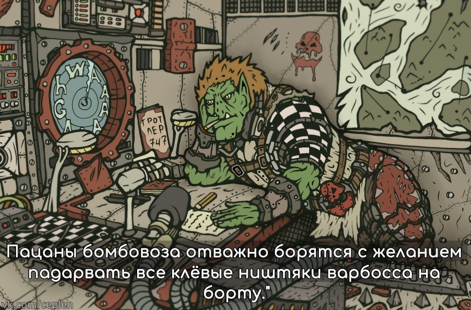 Как кхорниты вообще поддерживают свою боеготовность? Корабли должны обслуживаться, как и броня, как и техника, как и оружие Мирожоров. А ты пойди обслужи своего барена, когда у этого буйного хуесоса электроглисты и кровавый божок вызывают лютое желание всё время убивать всё живое. И это ещё не говоря о том, что сам экипад может немного так кукухой поехать из-за Кхорна.