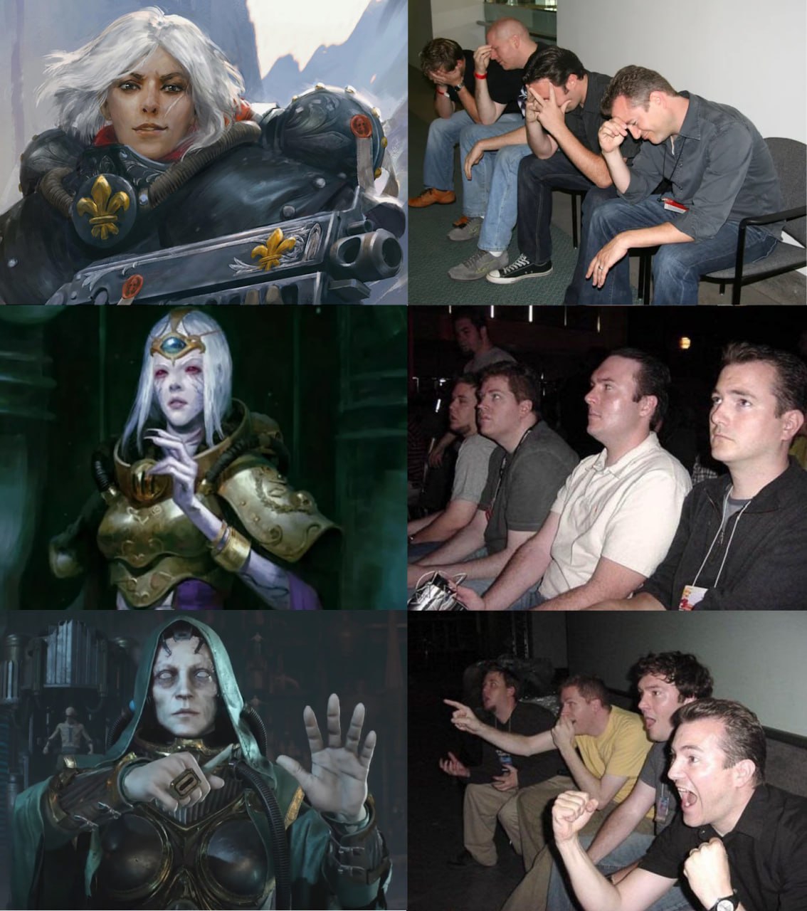 >>1107578 >новые фракции >межзвёздная империя Сходу варианты: 1) Космические беженцы из другой голактики. Лепишь АБСОЛЮТНО любую фигню, от девочек-волшебниц до Оптимуса Прайма с Мегатроном. Бонусом можно взять - "история утеряна, культура заново сформировалась во чревах звездолетов, управлять не могут". В конце концов, беженцы от тиранид. 2) А много ли было тех тау или активных некронов на момент их появления как фракции? 3) Когнитэ, граэли и Король-в-Желтом. 4) КАБАЛ 5)Мера фракций - единовременное число минек на столе. Отряд фанатиков с Некромунды-17, Орден Пылающих Срак тридцать третьего основания, непонятно от кого - нормально же будут восприниматься на столе? Теперь возьмем вместо Твердыни Ордена Пылающих Срак Лабораторию очередной подружки Импи. Как Коул, но с сиськами. 6) Магосы Биологусы. Можно любую дичь клепать.