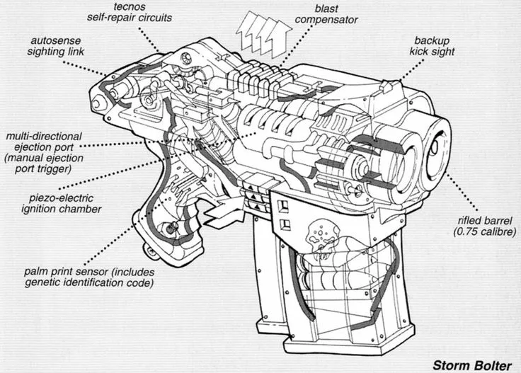 Остаётся один момент, которым я подробно не интересовался: болтеры у обычных людей и болтеры у астартес - они под один и тот же калибр? Может тут вся фишка, что вся эта тема, что болтер ломает руки обычным людям - это касается только болтеров астартес?
