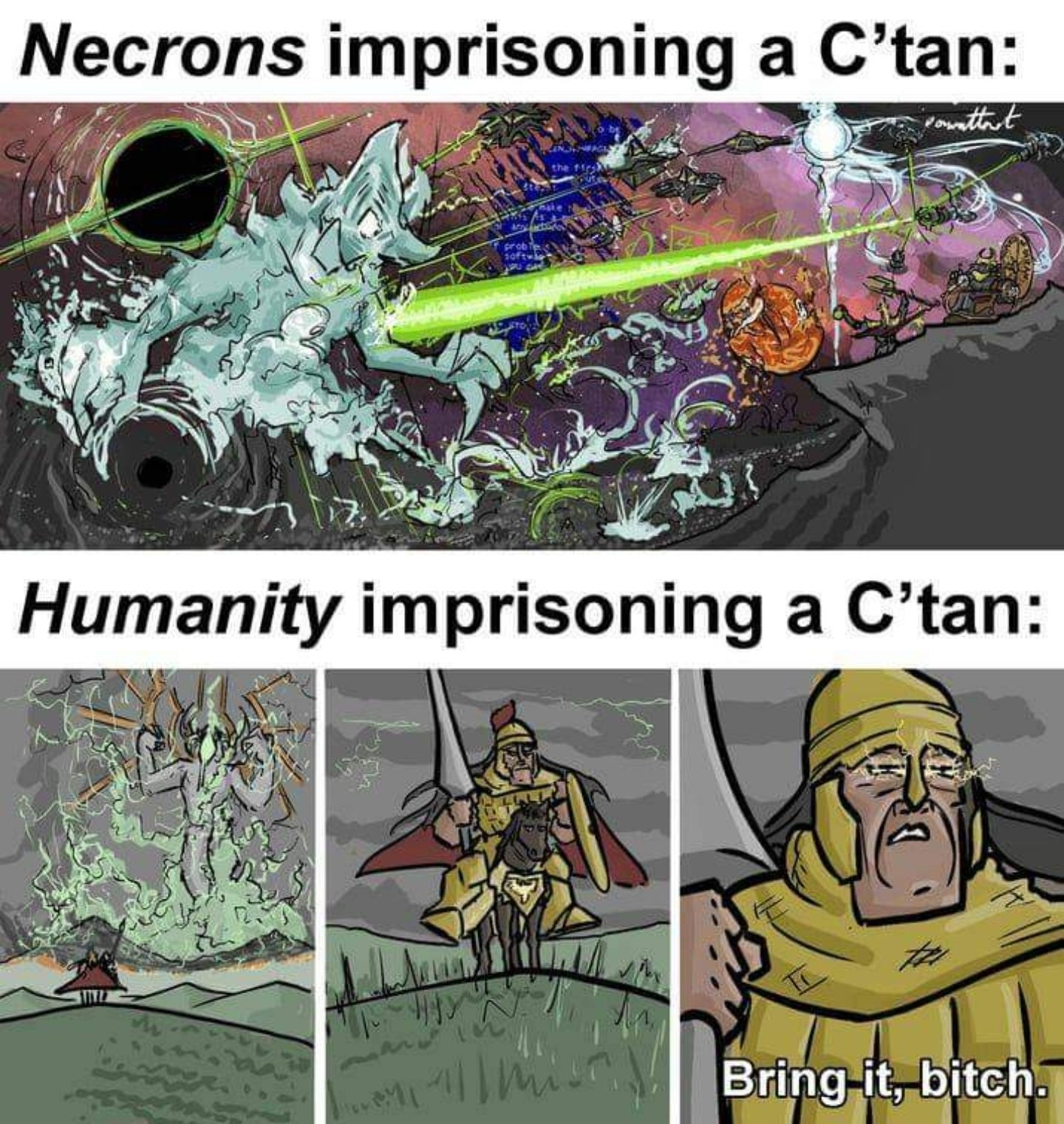 Некроны как тираниды - нависающий дамоклов пиздец чья нитка никогда не оборвется и нужна лишь для атмосферы гримдарка.