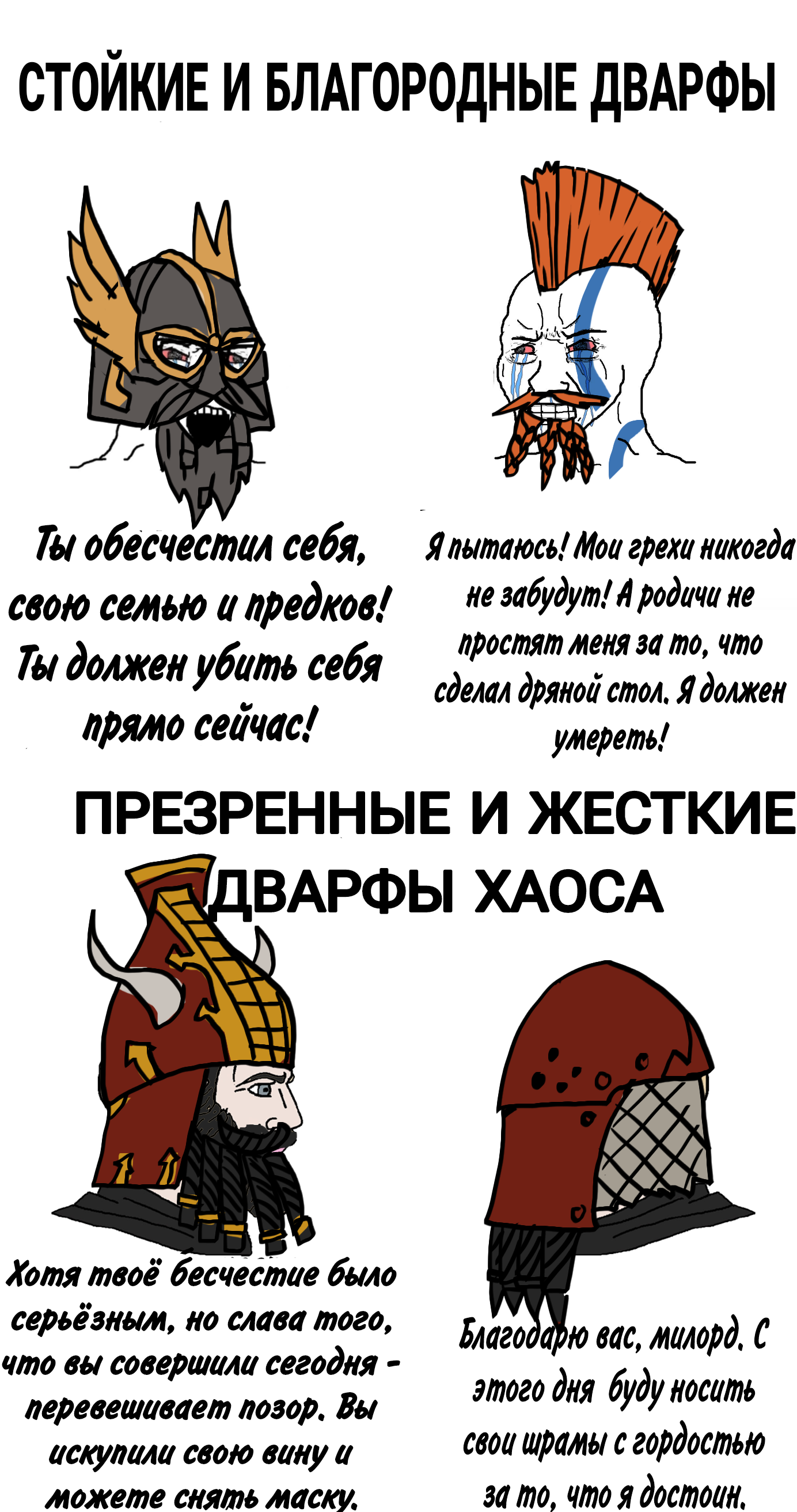 >>1111182 >Таким образом, срачи про гендеры в мире Вахи в принципе бессмысленны, как и повесточка. Изнутри сеттинга - да. Но снаружи сеттинга - всем прекрасно понятно, в рамках какой идеологии добавляются фемкусты, прононсы у орков и прочее.