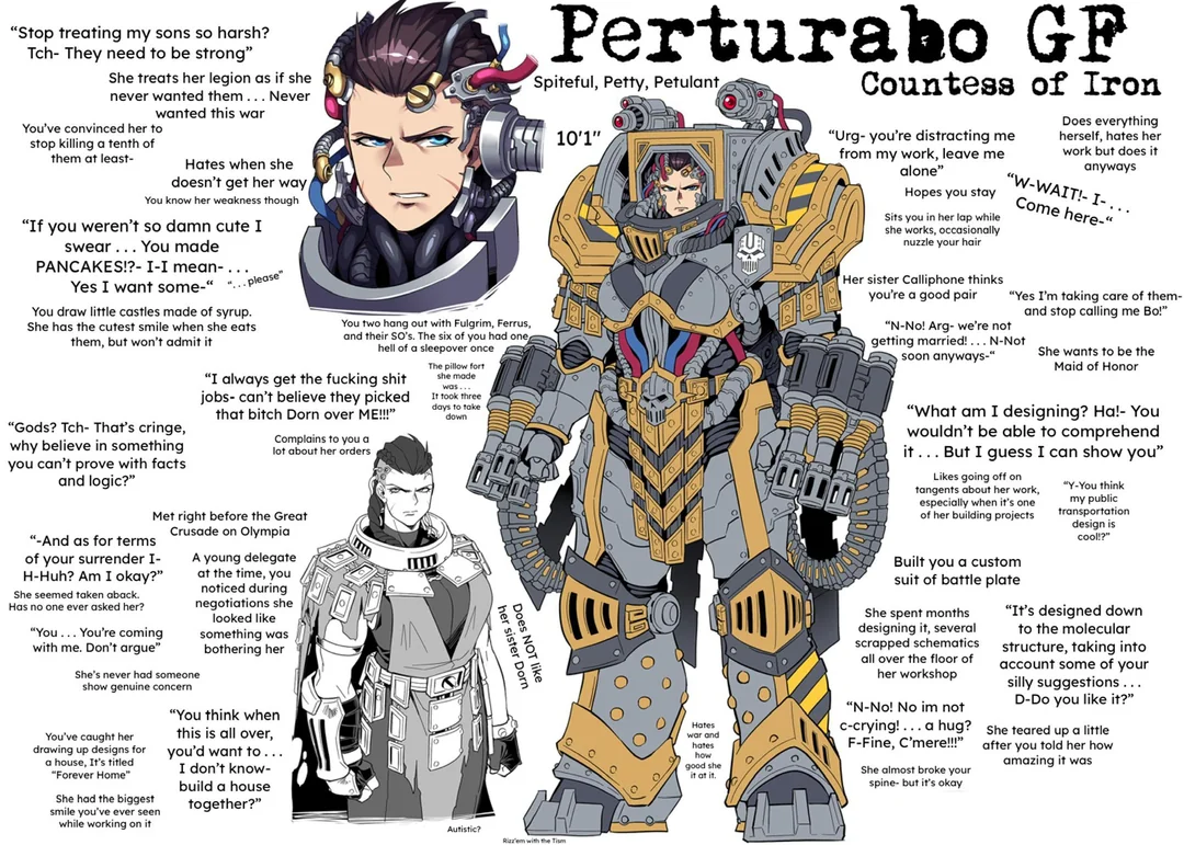А дискуссия была про что: Во второй книге своей трилогии Байл нашёл свой старый проект – клона Фулгрима. Хороший получился клон, Байл его какое-то время с собой таскал. Но в какой-то момент, пока Байла не было на корабле, там поднялся мятеж, и этот клон возглавил скажем так лоялистов, в том числе НЛ. И вот Байл возвращается, видит этого успешного военачальника, который отбил корабль, и на которого НЛ смотрят как на мессию, и понимает, что хоть он перенастроил у НЛ Хеликс Сапоголизус на себя, на Фулгрима он тоже срабатывает. Он расспрашивает Фулю, тот отзывается о НЛ как об отличных воинах. Тут Фабия триггерит: он создавал НЛ, чтобы они жили и развивались, а не стали очередным ГМО пушечным мясом у пубера. И он этого клона обменял у Тразина на бочку геносимена.