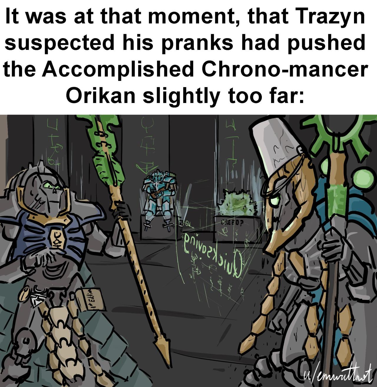 И ТУТ, СУКА, УРИЭЛЬ ВЕНТРИС ПРЯМО ВЕРХОМ НА ДЕМОНИЧЕСКОМ ПАРАВОЗЕ НЕКРОДЕРМИС ОШМЕТКИ РАСПИДОРАСИЛО ОСКОЛКИ КТАН ПО ВСЕМУ ВАРПУ!