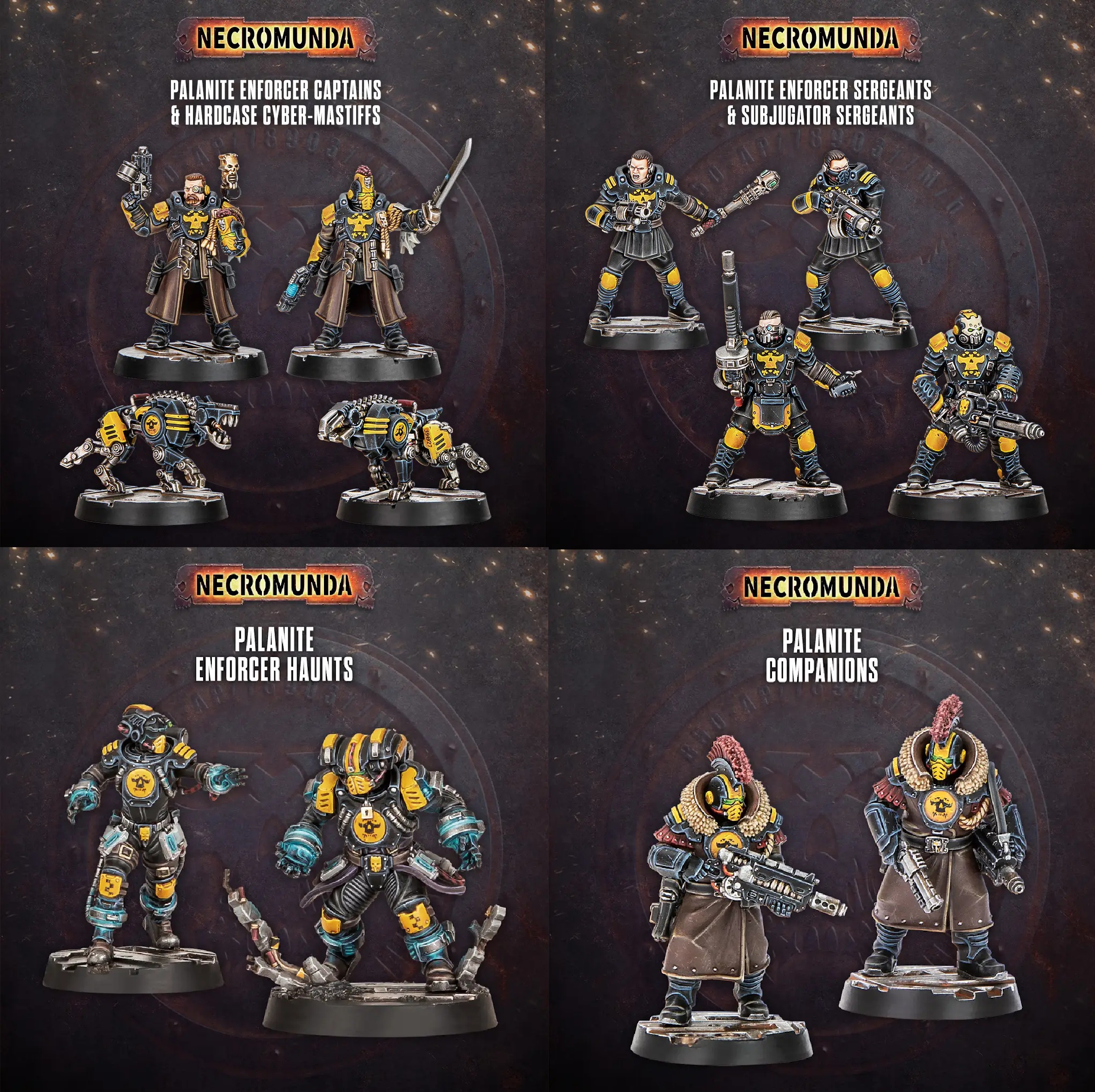 Судя по всему, ГВ решило перевыполнить план и выпустить фракционные книжки вторичных банд за год. БАСТИОНЫ ЗАКОНА уже где-то рядом. А с ними капитаны и сержанты с собственными миньками, компаньоны с дизинтеграторами, пси-хаунты и немношк твердотельных кибермастифов. Правила не показывали почти, но хаунты, судя по всему, двух видов - телепат и телекинетик, с автоотключением на перилах.