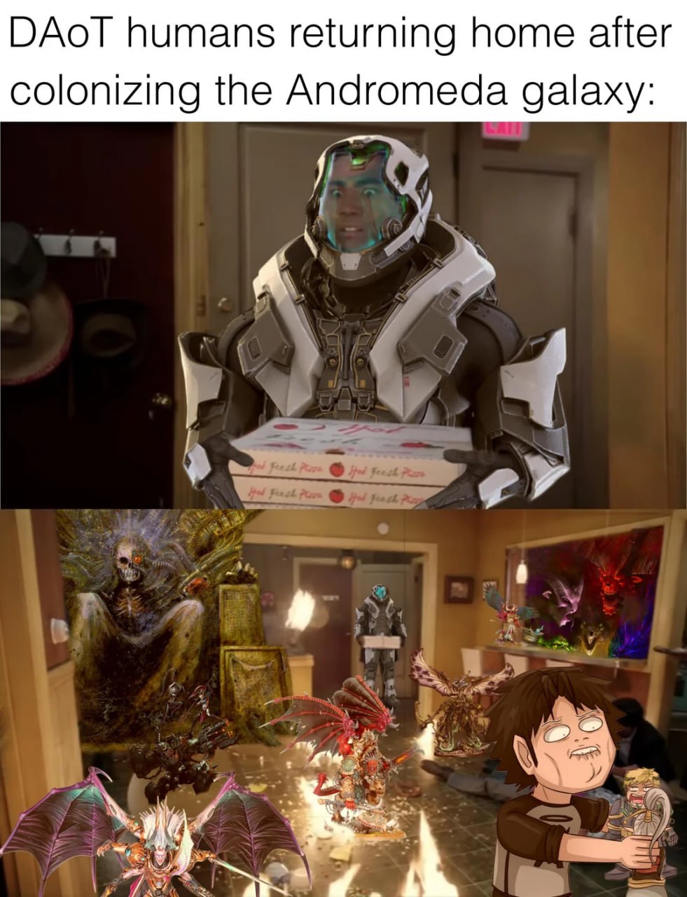 Беру йобу по перемещению варп говна и кидаю очко ужаса на встречу тиранидам во тьму меж звезд, вот и нахуй дальше нужен вархаммер? Читаю ИТТ и диву даюсь, такой тех попиже некроновского будет почти во всём, даже некродермис свой запилили. КТАН? ну вот у нас есть эксаватор размером с ебучий Нептун который с удовольствием наделает из вас много шекелей кинам Ктун это энергетическая сущность если что изначально тусившая в звезде. Вообщем хуй мы когда получим Золотой век, ибо будет ну слишком тупорыло даже по меркам вахи, когда великая и охуенная Земная федерация овнит вообще всё что видит. Один вспук и нет крафтворлда, охуительнная история. ГВ привыкли архиотехом сюжетные дыры затыкать ВОТ КОЛГАР ОТКИС, НО БЛАГОДОРЯ ТАБЛЕТКАМ ВРЕМЕН ТЭТ СРАЗУ ВОСКРЕС И ПОМОЛОДЕЛ(это я утрирую), ну или очередное крыло ужаса достанет из загашника йоба и превозмогёт.
