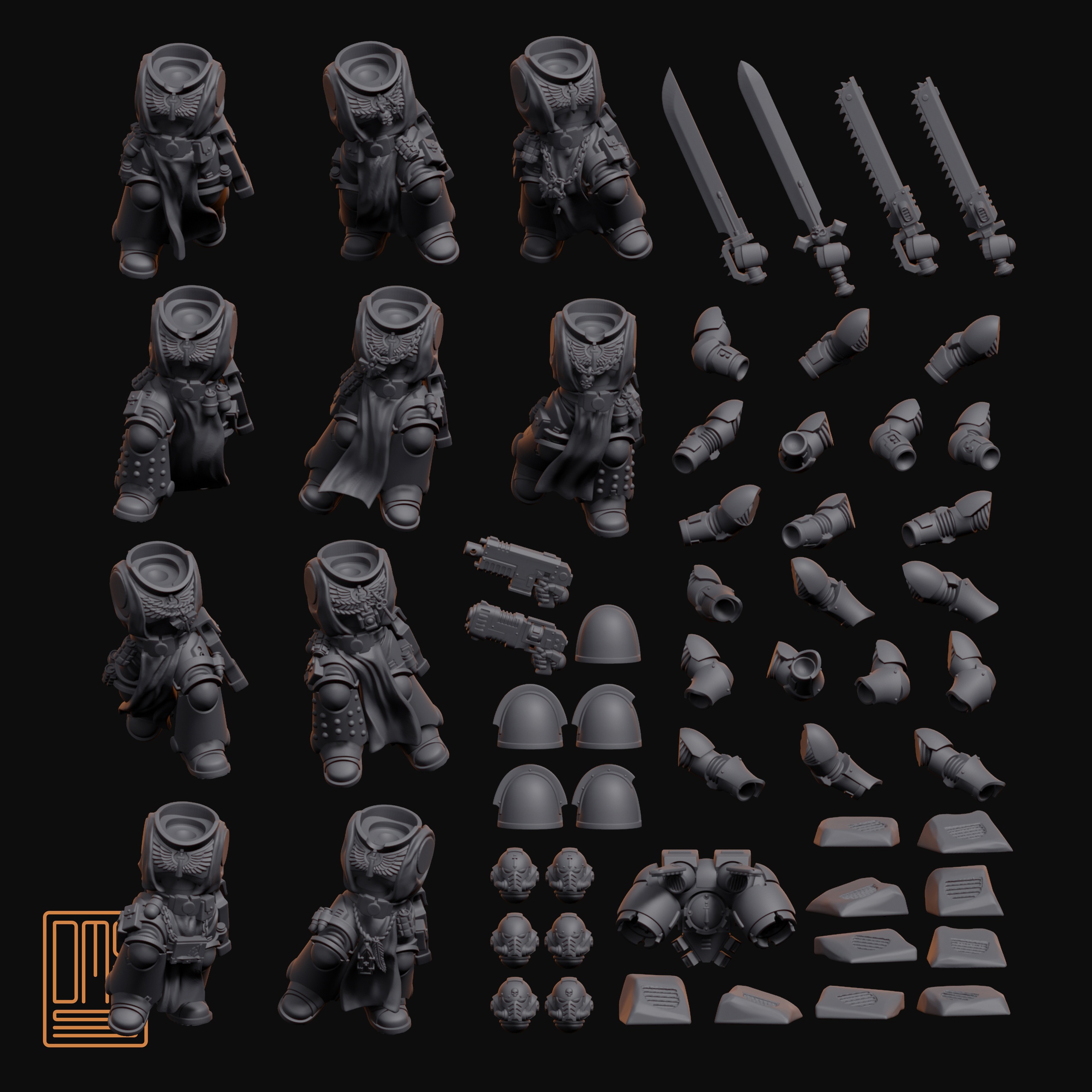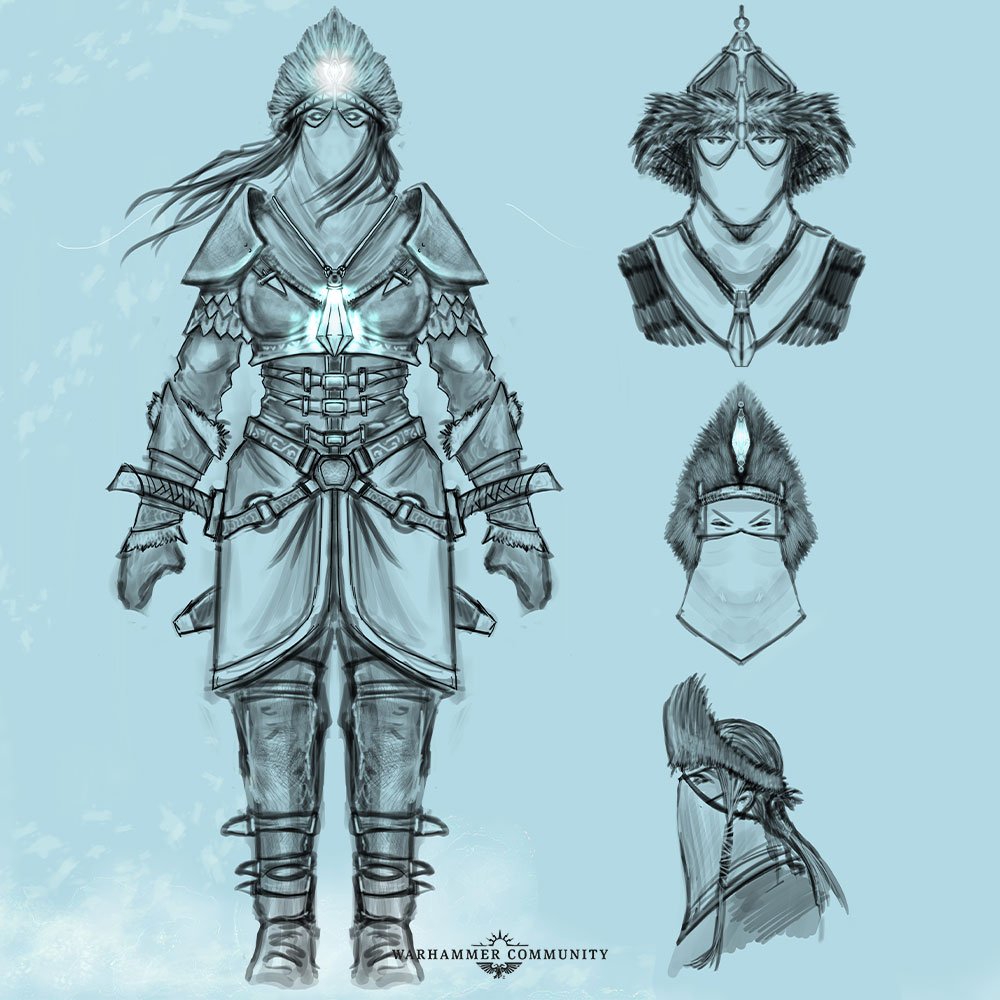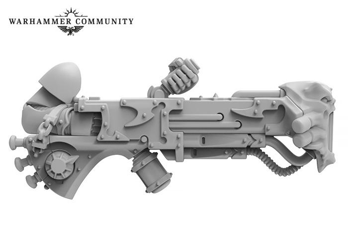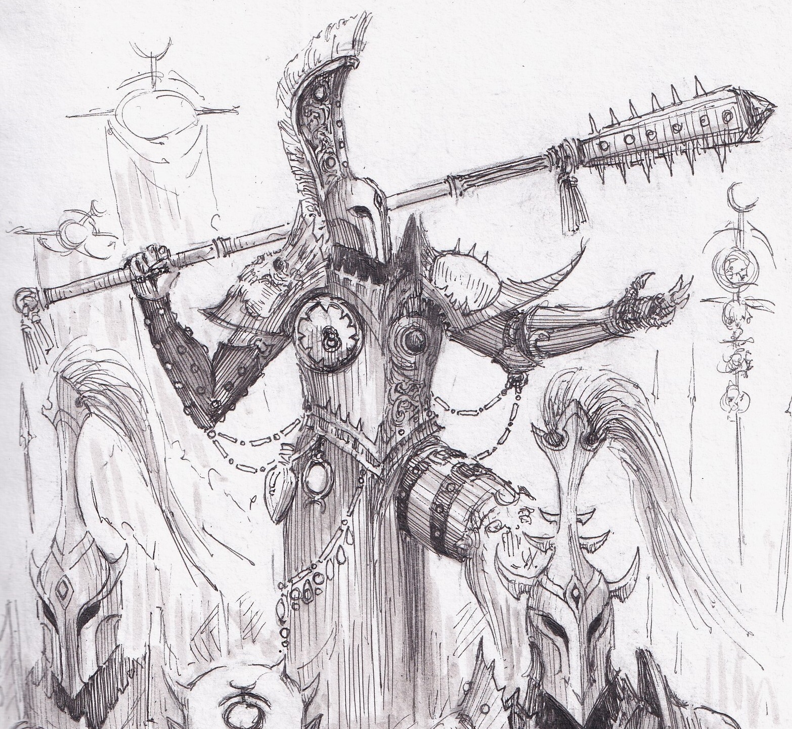 Вся работа началась с вопроса "А что если Механикум потеряют берега?". Воевода Гор разрешил своим железякам использовать забытые и проклятые знания, а также подключаться к Варпу. Нужно было создать эдакую предтечу к тачилам Хаоса в 40К, поэтому все силуэты должны были стать колючими, тонкими и страшными.