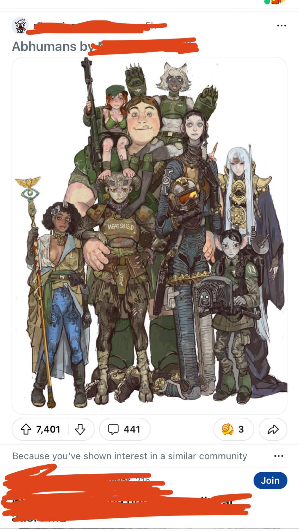 Недавно он нарисовал пик3, с абхуманами всех видов. Реддитовские, поумилявишись, разглядели внимательно бистменшу увидели неприличные надписи, зарубки на коже, и решили что художник тащит свои фетиши и забанили его везде. Хотя, ну мы понимаем, КАКАЯ судьба у лояльных бистменов в мире вархаммера, так что автор просто изобразил "По лору".