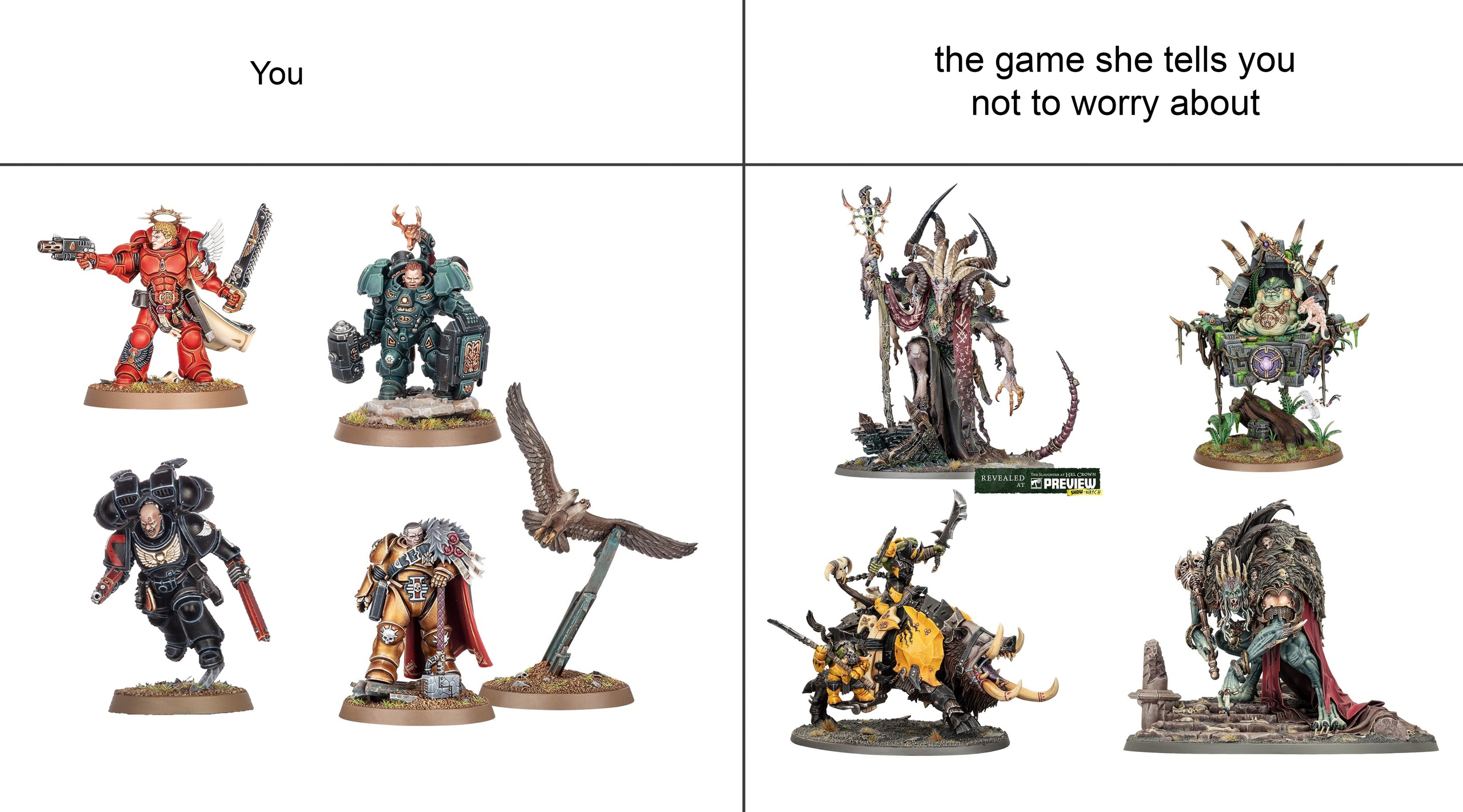 Нет бля, у них есть целый повесточный бог, есть гендерно-нейтральные некроны и вообще хуй пойми тираниды и некроны. Нет бля, будем кустов делать бабами
