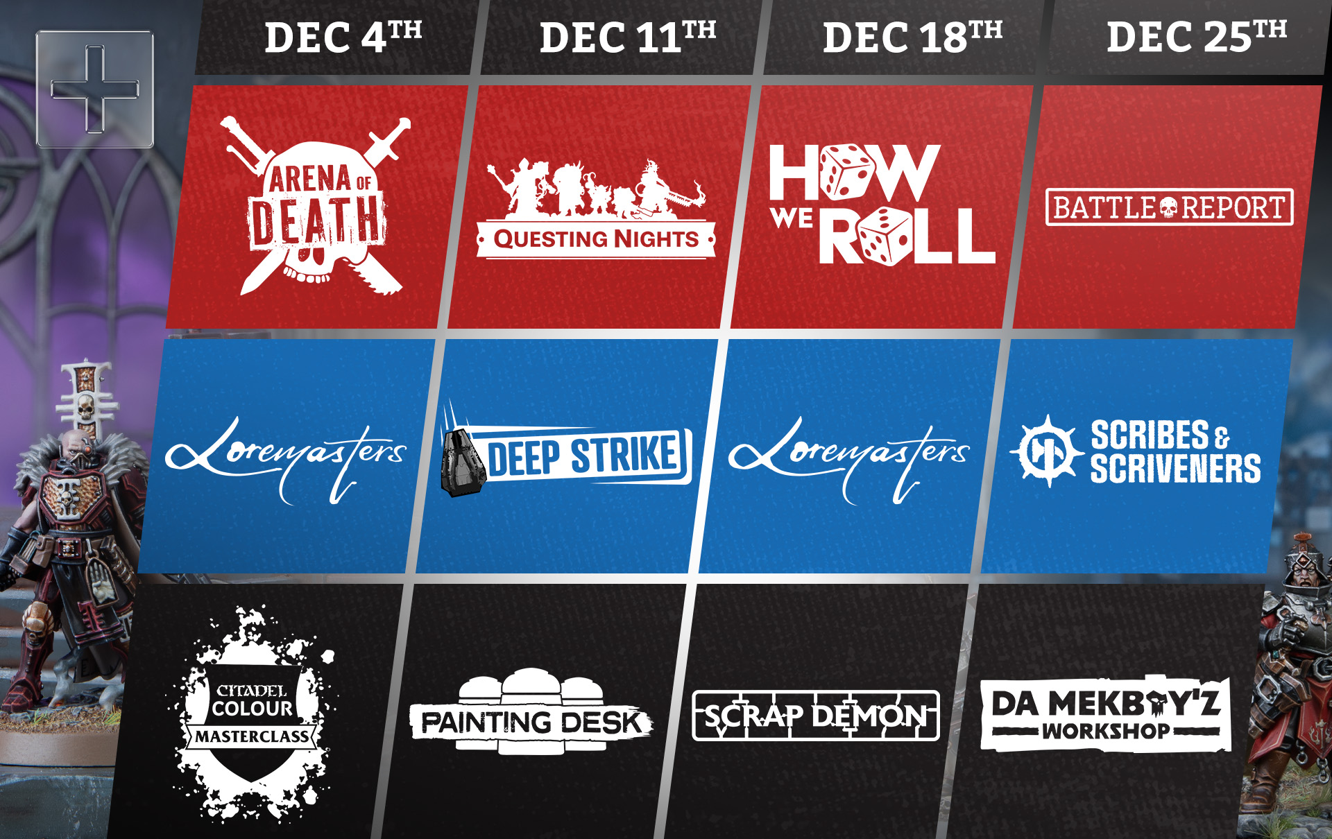 А с этими выходными можно завтыкать, что там был некствик, в котором были новые Орруки и их баттлтом, книжка Path to Glory Ravaged Coast, пачка звездных игроков ББ и микродоза микроМехов. Также Сераптек вернулся в продажу. А БЛ вместо буковок продает картинки: коробочка с двадцатью А3-картинками: 18 примархов, 1 Анператор и 1 Егор-Воевода в виде предателя. На Ваха+ будет Arena of Death с примархами, На мастер-классе научат обмазывать хавку, а лормастер поведает о Лунном Короле Скрагротте. На неделе должны показать победителя голосовалки Миниатюры Года.