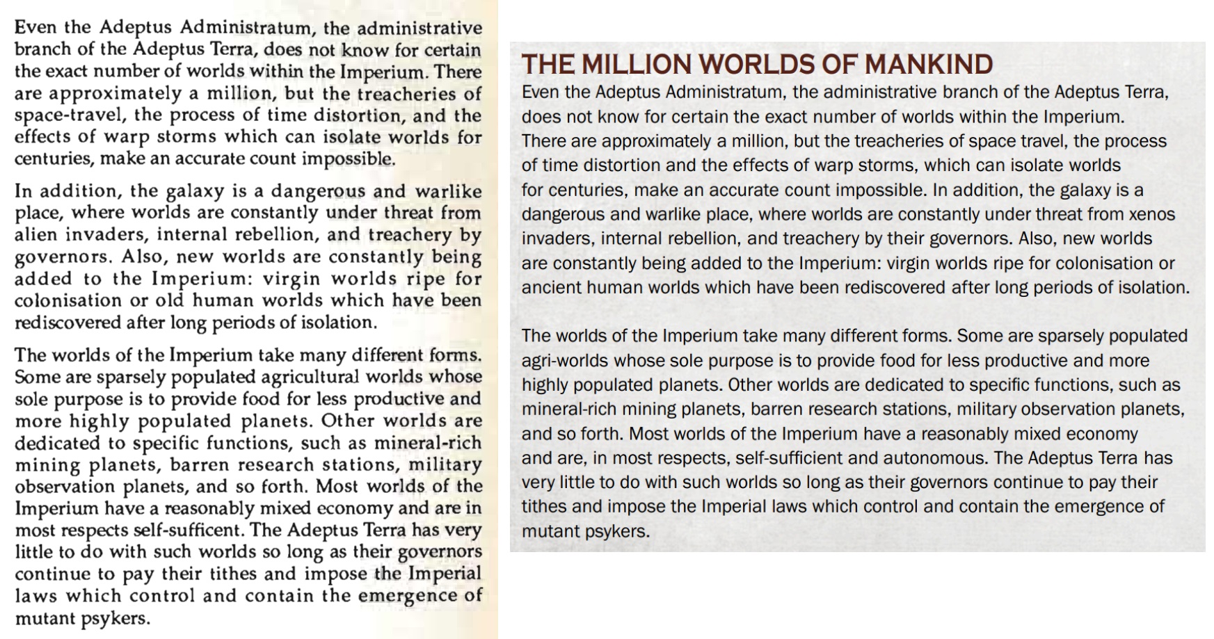 >>1120226 Ну сначала индомитус крусейд шел 200 шоле лет, прям пиздец какой таймскип после которого импераха уже уверенно смотрит в 50к, хаоситы загнаны под шконку и не представляют угрозы и тд. Потом реткон в нынешний лор, цикатрис маледиктум и всё такое.