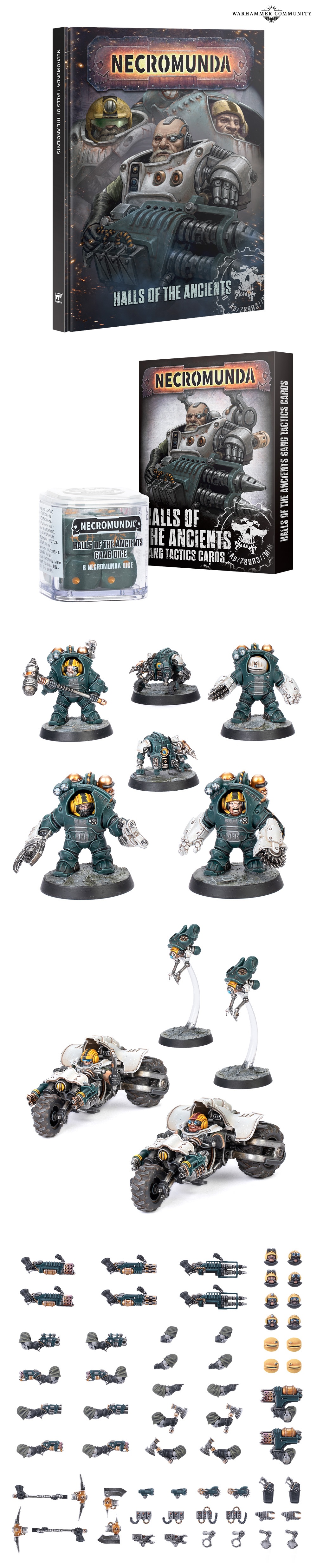 Теперь немного про приседаний Некромунды. Они получат свою книжку-дополнение The Halls of the Ancients. Лорная часть расскажет о том, как сюда попала Конфедерация Урлиш, как была заключена Великая Хартия, и что вообще они тут делают уже 10к лет. Обновленные правила для банд Скватов, расширенный список снаряжения, двух новых бойцов, экзотических зверей-техмитов и трайк плюс все чарактеры. Новые правила для Приседательной Родословной, которые позволят собрать свою банду Шахтерского Клана, либо же можно создать свой собственный Отколовшийся Клан. Все это приправлено 2 литниками оружия и свистелок-перделок.