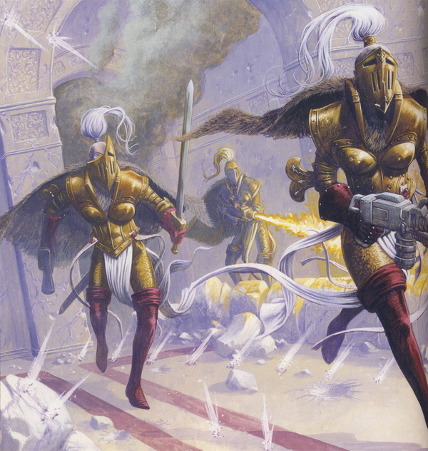 Отдельно замечу, что введение фемкустов ломает гендерный баланс (как ни странно). Раньше в Империуме было 2 чисто мужские организации (Астартес и Кустодес) и 2 чисто женские (Сороритас и Сёстры Безмолвия). Теперь 1 мужская и 2 женские. И казалось бы - существуют парии-мужчины, почему бы на волне возрождения СБ не реформировать их, набирать любых подходящих парий. Галактика-то в пси-жопе, не время нос воротить. Но не думаю, что подобное произойдёт.