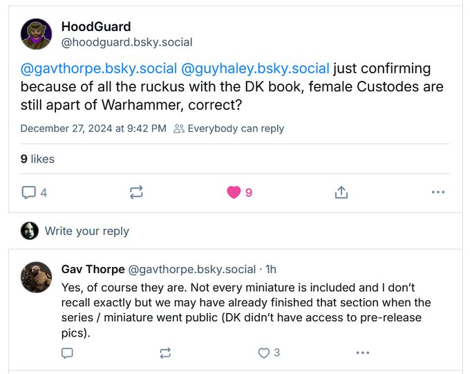 На самом деле в бабах кустах есть смысл. кусты слишком серая фракция, большинство считают ее просто еще одними маринчиками, просто золотыми. Но кусты горазду курче и интереснее этого. Им нужно больше фишек, и бабы вполне норм могли бы зайти, если бы их оформили правильно. Но их оформили максимально криво. У нас десятки книг с кустами, где этих самых именных кустов просто под сотню рыл и ВСЕ они мужики. Вот просто все. Нахуя было говорить, что бабы были всегда, если это просто не так? Какой смысл? Ну у вас же есть новая эра, которая Индомитус, тут у вас итак новые правила мира, есть новые марины, возвращаются примархи, ну пусть тут и появятся бабы кусты, в чем проблема? Нет, будет страдать хуйней и ретконить то, что этого не требовало, это глупо просто