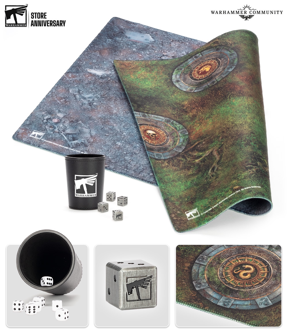 В 2025 году в день годовщины вашего локалстора можно будет купить эти лимитные миньки и получить бесплатные значки. А за трату определённой суммы тронов выдадут что-нибудь интересное: 50 фунтов - стакашка для метания кубов, 100 фунтов - 4 митольных куба, 200 фунтов - неопреновый двусторонний мат для 40к и АоСа.
