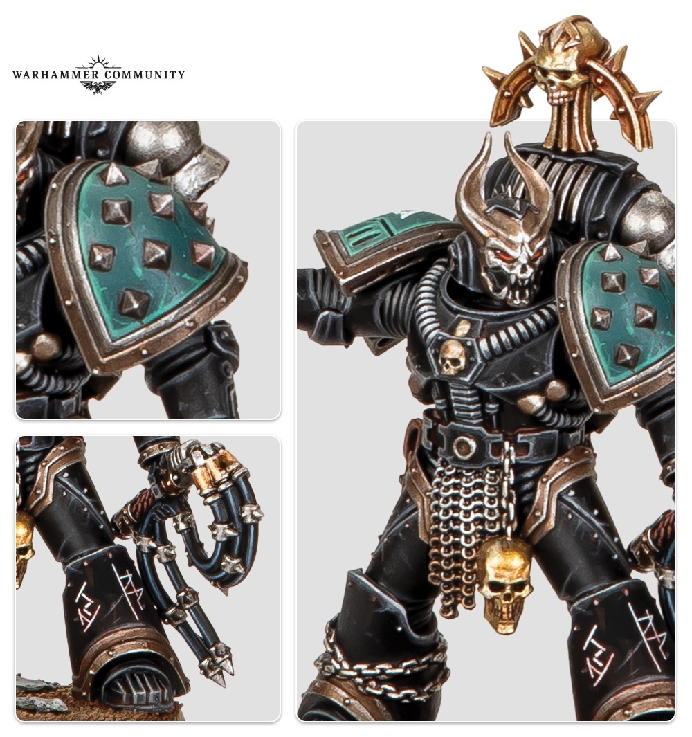 The element of fear is a powerful tool in any Overseer’s arsenal, and this Traitor-aligned example is decked out with a terrifying (borderline daemonic) mask to put the fear of Horus himself into any mortals with funny ideas. Their armour is less ornamented than that of their Loyalist counterparts, but the message delivered by their excess of skulls and chains is no less clear – obey.