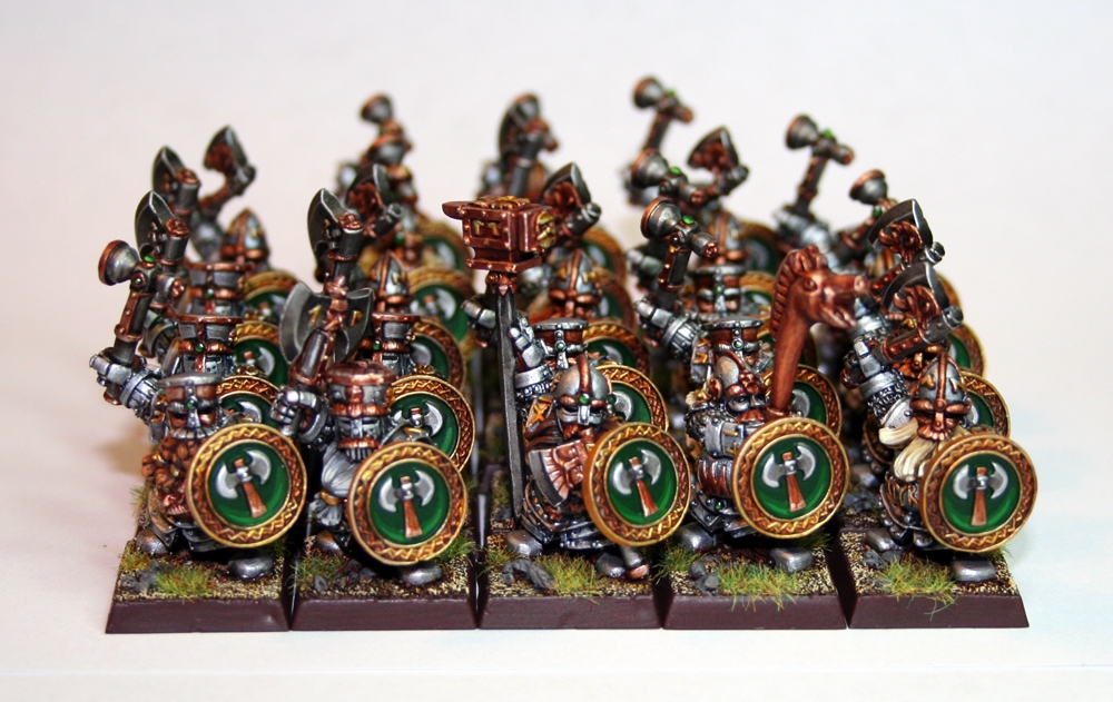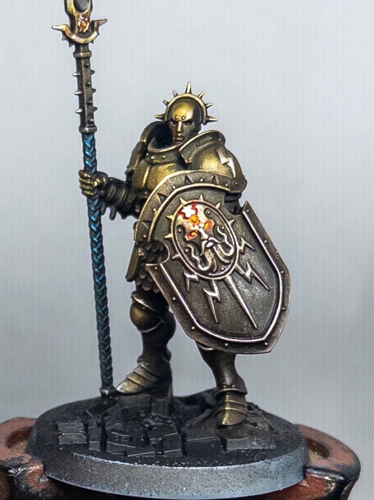 Честно, на пятый заход меня уже просто заебало красить этих ВЫПУКЛЫХ во все стороны чозенов АоС-а, да у них пиздатая и более детальная моделька по сравнению с тем же чозеном из 40к, но вторая версия хоть и заезженная, но её так приятно красить, плюс почти минимальный шанс заляпать слой ниже, в отличии от Сигмаровских, у которых по 3-4 уровня деталей...
