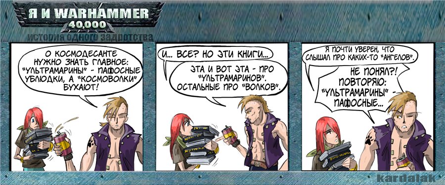 Дорогой неофит, если ты зашёл на эту доску и ищешь картинки в хайрезе или пдфки кодексов, то погоди создавать тред с реквестом, написанным КАПСБОЛДОМ, лучше спроси в треде картинок/литературы. Актуальные ссылки всегда висят в шапке раздела. Если ты не понимаешь каких-то вещей, у тебя есть вопросы, ты жаждешь знаний по бэку/настолке, то смело спрашивай тут, и мимопроходящие вахаёбы постараются ответить на него в меру своей упоротости/дивности. И не забывай о Лексикануме, он зачастую знает больше анона: http://www.lexicanum.com/ Для настольщиков: https://wahapedia.ru/