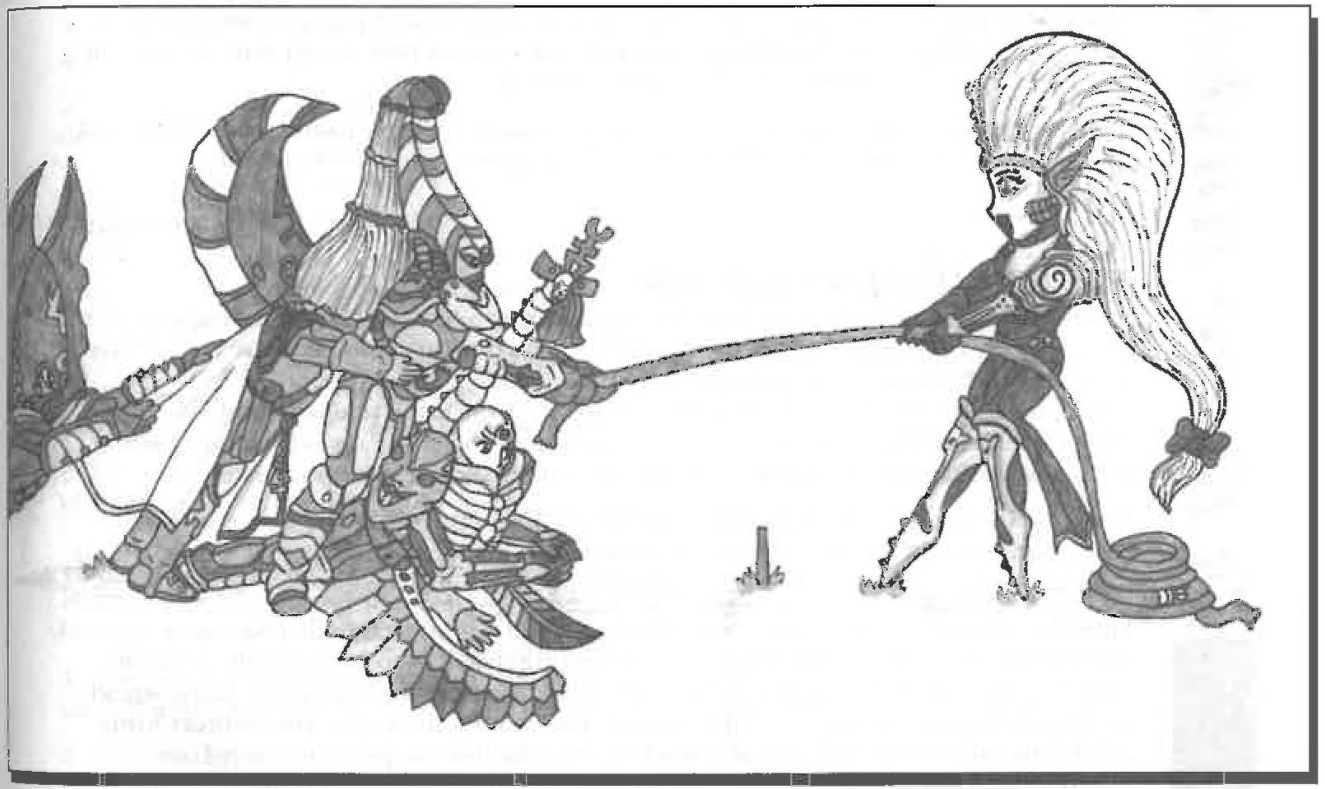 >— Печально, — сказал он. — Биология эльдар гораздо менее... груба, чем человеческая. Заражение требует намного больше поколений, чтобы достичь мутации примациев. К тому времени, обычно, сообщество гибридов обнаруживают и зачищают. Эльдар без бдительности — ничто. Я нашёл Трикару случайно в ходе своих путешествий. Она из пятнадцатого или шестнадцатого поколения, насколько я могу сказать. Хех — абсолютно безумна, конечно, но довольно опустошительна, я думаю, ты согласишься. И она делает что приказано. Разум эльдар — странная штука, Гхейт... Блестящий, острый, многогранный... но его так легко разбить. Как фальшивый бриллиант.