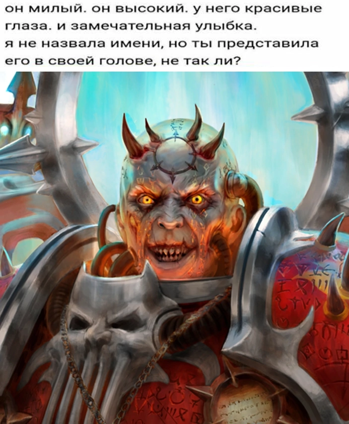>>1117801 Анафемой его кличут потому что боятся и ненавидят. >До Молоха выше простого псайкера Импи не прыгал Ну конечно челик сильнее чем все вместе взятые вечные всего-то простой псайкер. Сделки он не заключал по одной просто причине. Метафизика данной взятой вселенной такова что любые сделки, договоры и якшания четверкой это бесповоротный вечный коррапт. Пуская хоть на микрон губительный уд в свою имматериальную верзоху ты теряешь душу и становишься вечным рабом. А что он там делал на самом деле, а хуй его знает, что угодно. Портал молеха это просто портал в варп, а не портал в заключение сделки с четверкой. Он мог там что-то спиздить, а мог и просто под дверь медной крепости насрать.