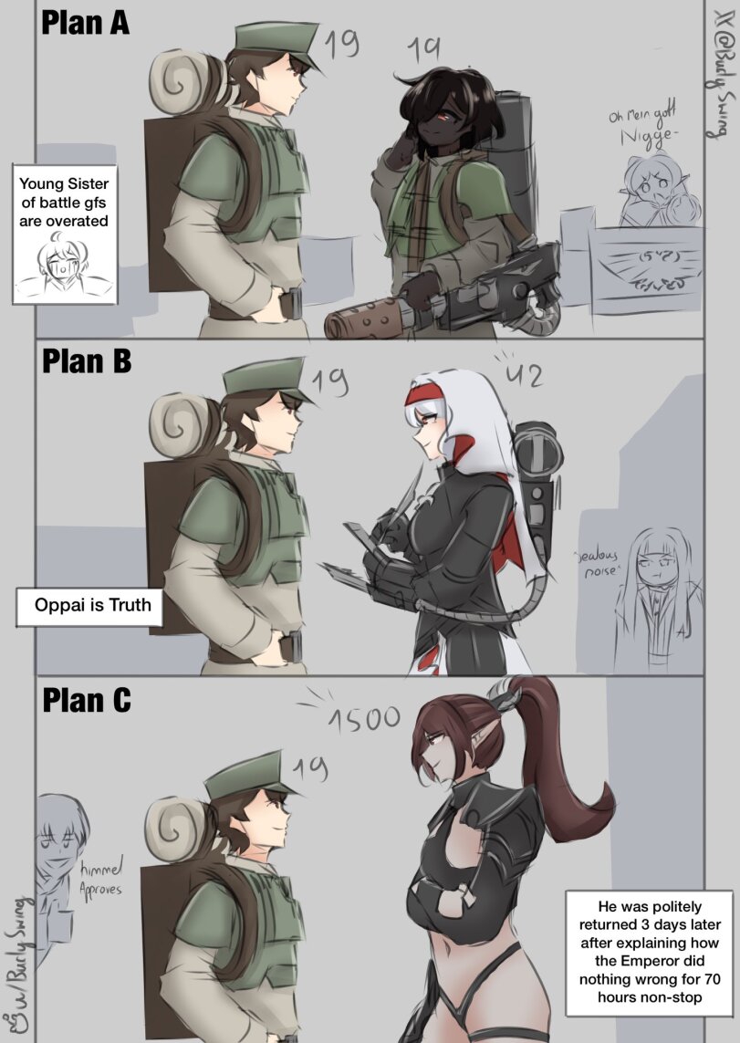 >>1128726 > Сыны Лул Суроха - без вариантов, точка невозврата была пройдена на Исстване. Шоколад не виноват, примарх приказал, легионер исполняет. Децимация и достаточно. Остальных в африканский рангданский корпус. > Пожиратели Топоров - аналогично, Ангронка прыгает, лоялы в легионе вычищены. Да им похуй вообще, лишь бы убивать убивать убивать. Даже вычищать никого не надо - Ангрюше половину оставшейся половины мозга заменить на трансляцию радио Радонеж и отправить в контрнаступ на Рангду. > Дети Скибидиратора - см. Исстван 3, Фуля ещё не ебнул Ферруса, но уже подчинён демоном из меча. Тут проблема только в фуле. Если отжать заточку с димоном, то одумается и покается. > его бы мог ждать только суд, к которому его собирались привлечь Да похуй, может уничтожать свой мир сколько угодно. Наказать, легион децимировать и в контрнаступ. То, что легион из маньяков состоит так это норма - не все образцовые ультрамарины или жалющиеся от выпиленной эльдарочки вулканы. Те же томные ангелы хоть и не маньяки и не кайфуют от садизма, но обладают ровно нулевой человеской моралью и имеют ровно ноль проблем загеноцидить хоть всю галактику, если император прикажет. Батьке-то виднее, а легионер сверхчеловек маленький.