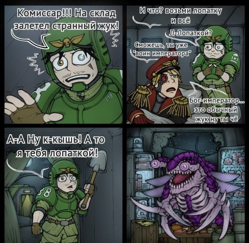 А что если все говно справлять по варпу в Око Ужаса? Не решит ли это проблему загрязнения имперских миров? Ну вот к примеру, захочет уважаемый космический волк посрать как следует в кой то веки, а кругом сугробы, что делать? А тут хоба, межпространственное варп-очко под рукой, садится туда жопой, она через варп-разлом где-нибудь на Сорциариусе выглядывает или прям у Абаддона в покоях, ну и продристывается как следует, от души так сказать, Всеотцу на славу, да Руссу на радость.