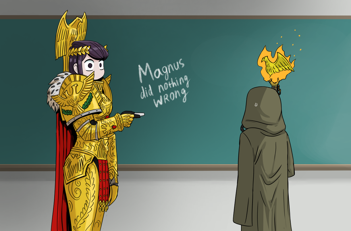 >Магнус пидор проткнул паутину и разрушил мечту Императора Магнус очень сожалел о том что мечта Императора под угрозой, потому что он был лояльным и преданным сыном. Что касается его вины в этой ситуации - Император же не потрудился сообщить про эту максимально неочевидную хуйню своим, хотя боги хаоса были в курсе. Просто представь, что твой батя тебе говорит максимально обобщенно - сын ни в коем случае не открывай двери. Ты узнаешь что твой брат хочет убить батю и прибегаешь к нему в хату чтобы предупредить, открываешь дверь, но оказывается что у бати в щели между дверью и косяком была флешка с кошельком на миллиард биткоинов и ты безвозвратно ее уничтожил. Кто виноват в такой ситуации?