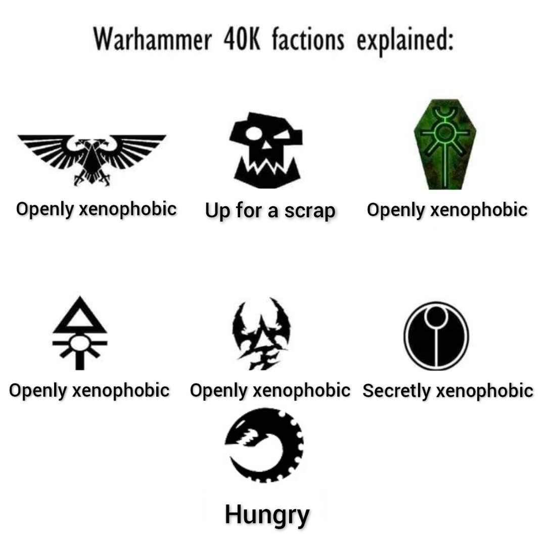 >>1127448 >всю варп хуйню Ну не, от варп хуйни орки тоже немало по шапке получают, просто их это устраивает. Никто от вирдбойзов точности и предсказуемости не ожидает просто потому что орки в принципе так же ее не особо демонстрируют. >каких то жуков Они чужды нашей галактике, конечно у них будет все странно и по-другому. >То демоны есть типо у хаоса, но есть И другие обитатели варпа. Как бы хаос ни хотел и не стремился, весь варп заполнить у него пока не вышло.