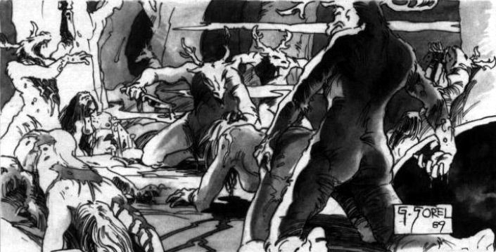 Scarcely a hundred Tabor had survived the battle. The Prophet asked me what I felt. I told him that I wanted vengeance, vengeance against the giants who had killed my father and brothers, against those who had shattered my clan, vengeance against their kin and their young, that I wanted to tear down their God and make them regret raising arms against the Tabor. The Prophet was pleased with my answer and said that I would travel beyond the winds with him and that I would also be a warrior of the Gods.