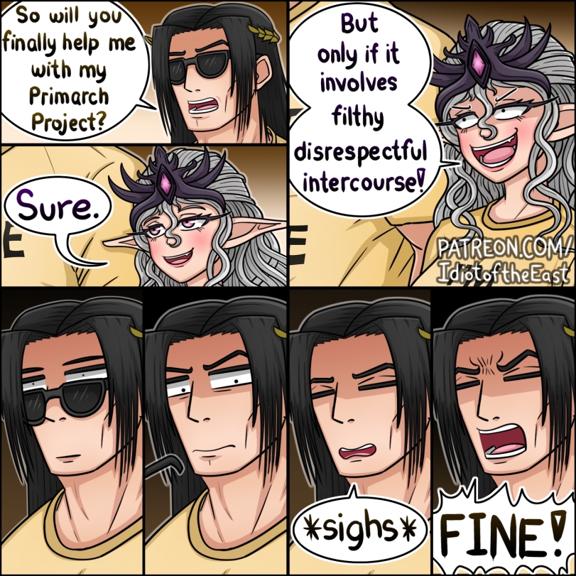 >>1128793 >Но они ведь как то ебуться? В темноте под одеялом. И присмотром фарсиров. Шучу, блядство среди сахародупых норма, просто то что по меркам мон-кей блядство для эльдарасов строгие асектические порядки, а теперь представь что творилось до Грехопадения...