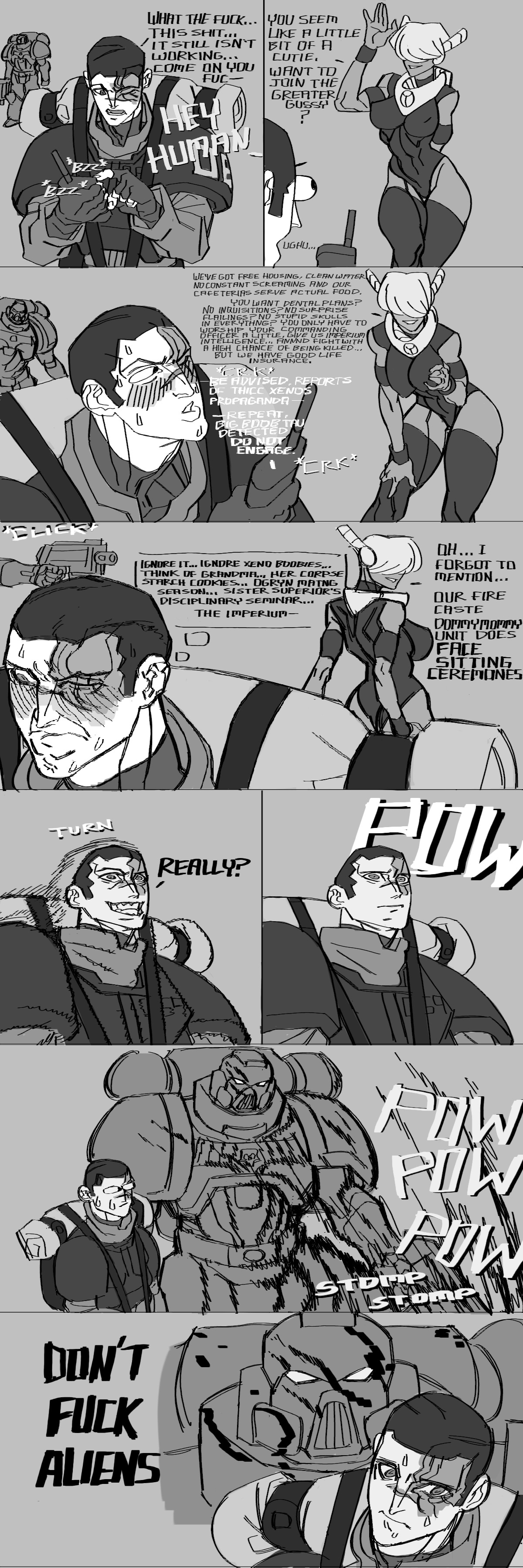 > Понятно что по факту Империум не в состоянии сейчас уничтожить всех ксеносов, но это прописано в его официальной идеологии - вообще всех без компромиссов. Сюрприз — не прописано. Император ни разу не говорил о полном ксеноциде, и, как выше уже написали, ряд не опасных ксеносов официально признавали не подлежащими уничтожению. Идеи Империум по факту могут трактовать как очень жёстко, так и относительно мягко, в зависимости от ситуации.