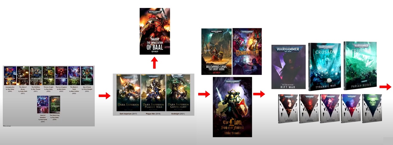 >Про ТЭТ нельзя сказать того же самого, - если про Ересь с самого старта вахи было известно хотя бы несколько абзацев, то о ТЭТ известно буквально нихуя, крупицы инфы из кучи разрозненных источников без цельной картины. И там банально даже не за что и не за кого зацепиться. Очень удобно - можно высрать целую эпоху буквально с нуля.