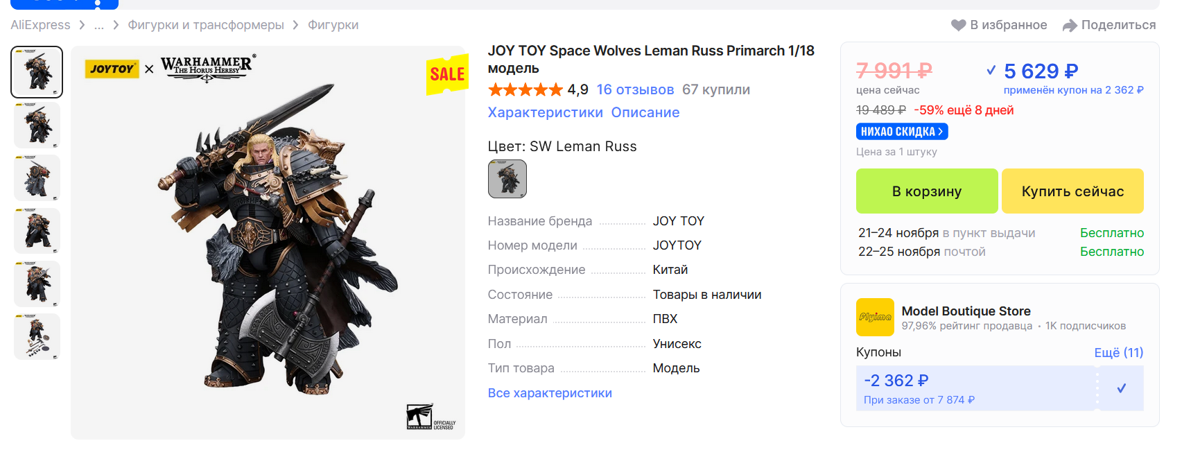 >>1135304 > но в РФ не доставляют (очевидно). Нихуя не очевидно. На озоне есть оф магаз, также есть всякие cooltoysclub которые возят по супернизким ценам. На алике предзаказы почти сразу выкладывают, можешь сразу и закинуть. Цены смотри примерно как в группе со 2 пика, у них всегда адекватно, но бывает можно и подешевле найти. Особенно в последний месяц цены на все фигурки в принципе в пизду упали, терминаторы по 1к бывает валяются на озоне. Сам весь бюджет на коробки с гандамами слил, даже на альфа легион не получилось выделить. > Они постепенно выкатят разнообразный модельный ряд или это затянется на годы вперемешку с другими релизами? Обычно идет волна с несколько релизов на пару месяцев. Но если у фракции контента нихуя (а у жв нихуя, максимум ещё варпсмит остается и те роботы с молотками) то могут и одной партией пернуть.