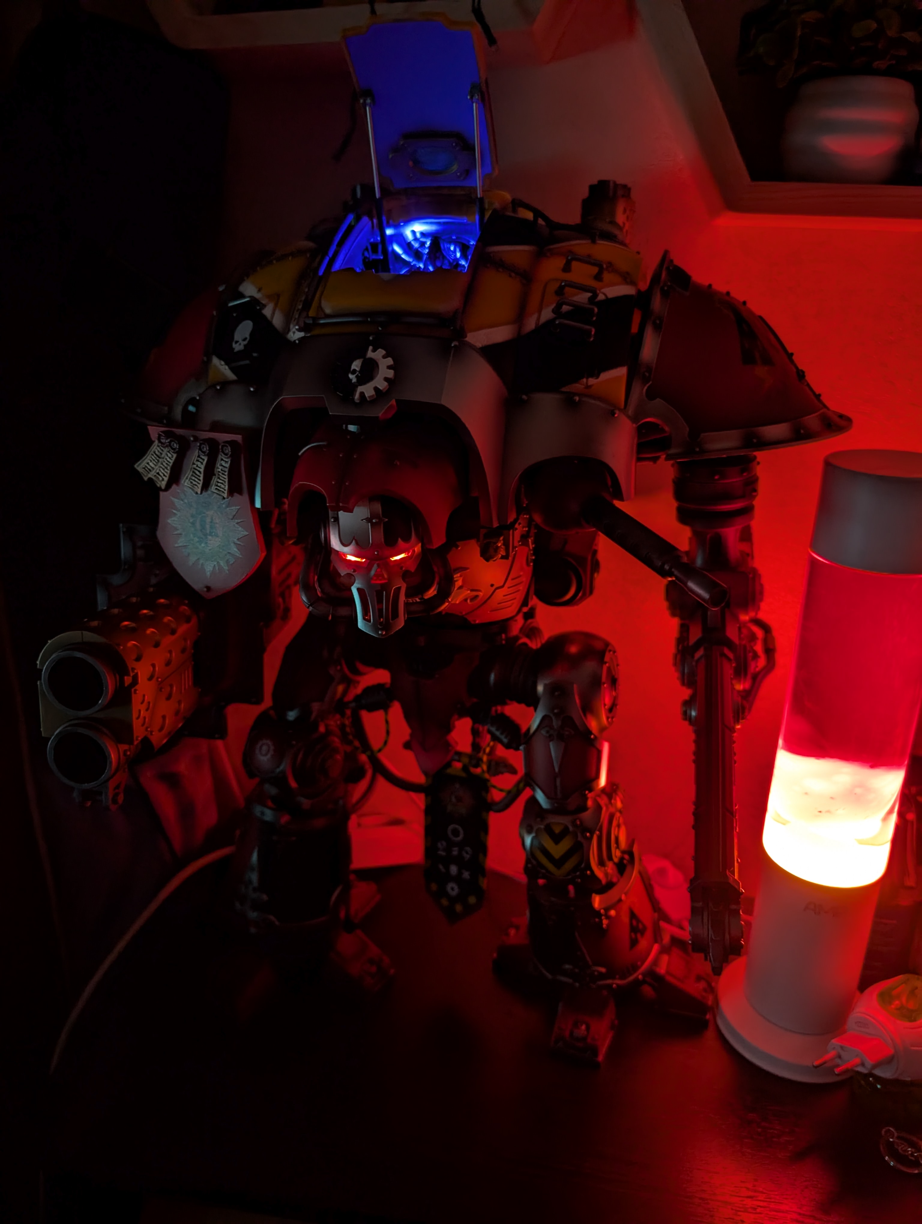 Вообще, мне нравится концепт хелбрута: десантника замуровали в саркофаг, чтобы страдать, но он пророс через него и снова может чувствовать солнышко, дуновение ветерка... И на душе у него настал мир и покой, прерываемый только резней во имя Темных Богов.