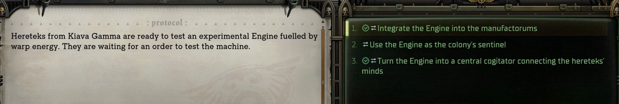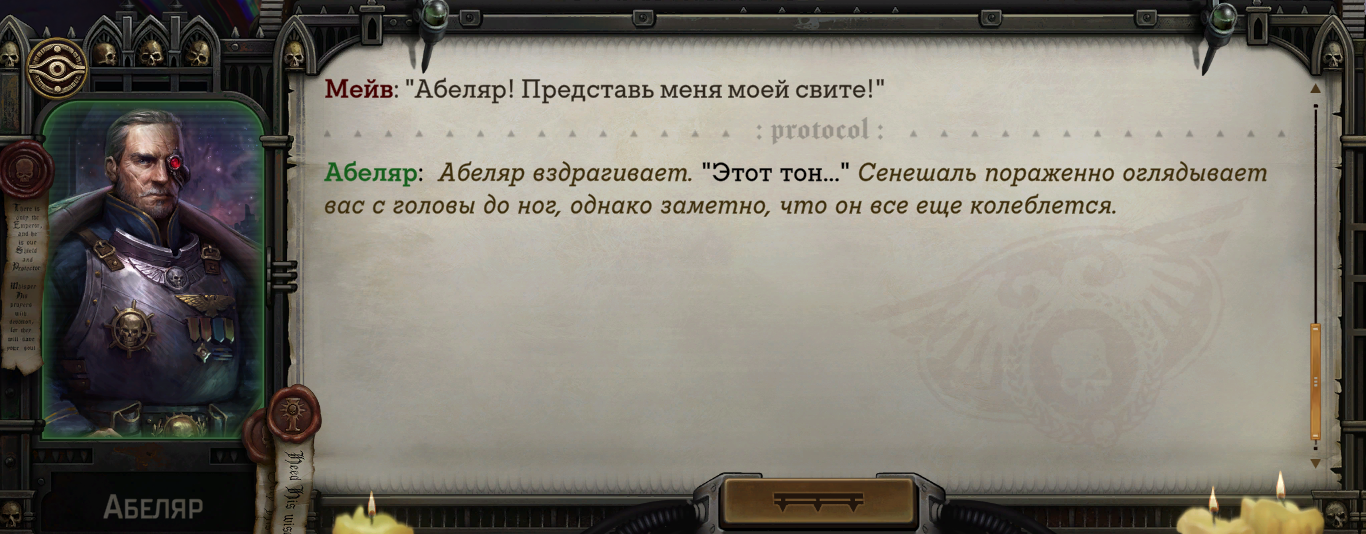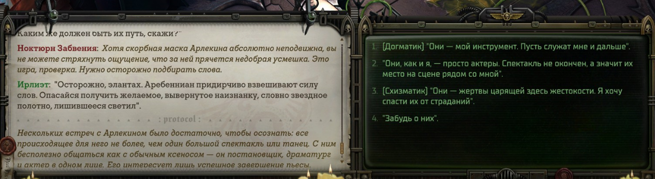 Прошёл в этот раз за догматика и охуел от того, насколько это хорошая концовка. Абеляр в нарды регицид гоняет с Соломоном, Кибелла тусит в кровавой паутине своей, Хейнрикс стал Лорд-инквизитором, Ульфара с кеками суют в дредноута, а всей ёбаных еретиков и ксеносов я нахуй убил. В остальных судьбы куда мрачнее.